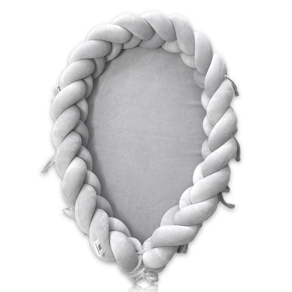 Multifunkčné plyšové pletené hniezdo (2v1) - bledošedá