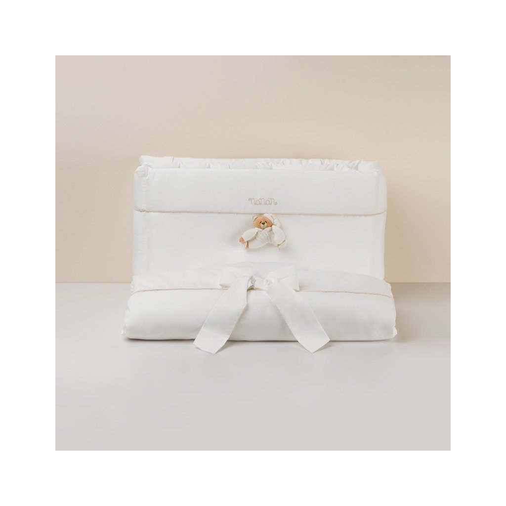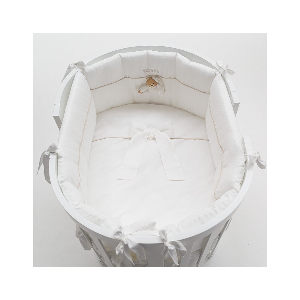 Doprajte svojmu bábätku maximálny komfort s luxusnou 4-dielnou súpravou Nanán Tato v elegantnej smotanovej farbe. Navrhnutá pre oválne postieľky, poskytuje bezpečie a pohodlie počas spánku. Set obsahuje: ochranný mantinel, návliečku na vankúšik, návliečku na perinu a samotnú perinu. Vhodný do Nanán prestaviteľnej oválnej detskej postieľky 3v1 (LE103) v smotanovej farbe.