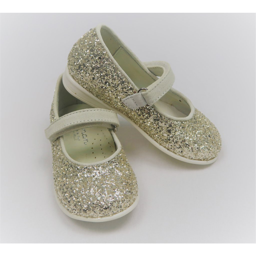 Doprajte svojej malej princeznej nádherný a elegantný vzhľad s balerínkami Nanán v zlatej farbe. Pohodlné, ľahučké a ideálne na špeciálne príležitosti aj bežné nosenie. Vyrobené v Taliansku, celokožené vnútro.