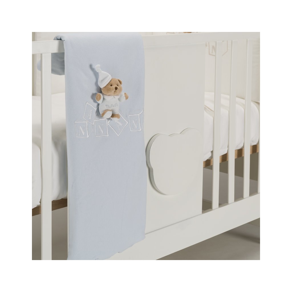 Kvalitná hebká bavlnená deka pre bábätko s dekoráciou nežného medvedíka kolekcie Tato od talianskej prestížnej značky Nanán. Vyrobené zo super mäkkého bavlneného jersey pre najlepšiu pohodu a mäkkosť pri spaní vášho drobca. Svojou jemnosťou vás očarí! Ideálna aj ako darček.