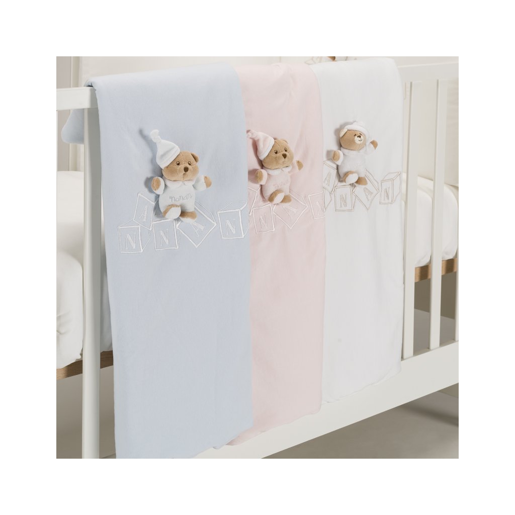 Kvalitná hebká bavlnená deka pre bábätko s dekoráciou nežného medvedíka kolekcie Tato od talianskej prestížnej značky Nanán. Vyrobené zo super mäkkého bavlneného jersey pre najlepšiu pohodu a mäkkosť pri spaní vášho drobca. Svojou jemnosťou vás očarí! Ideálna aj ako darček.