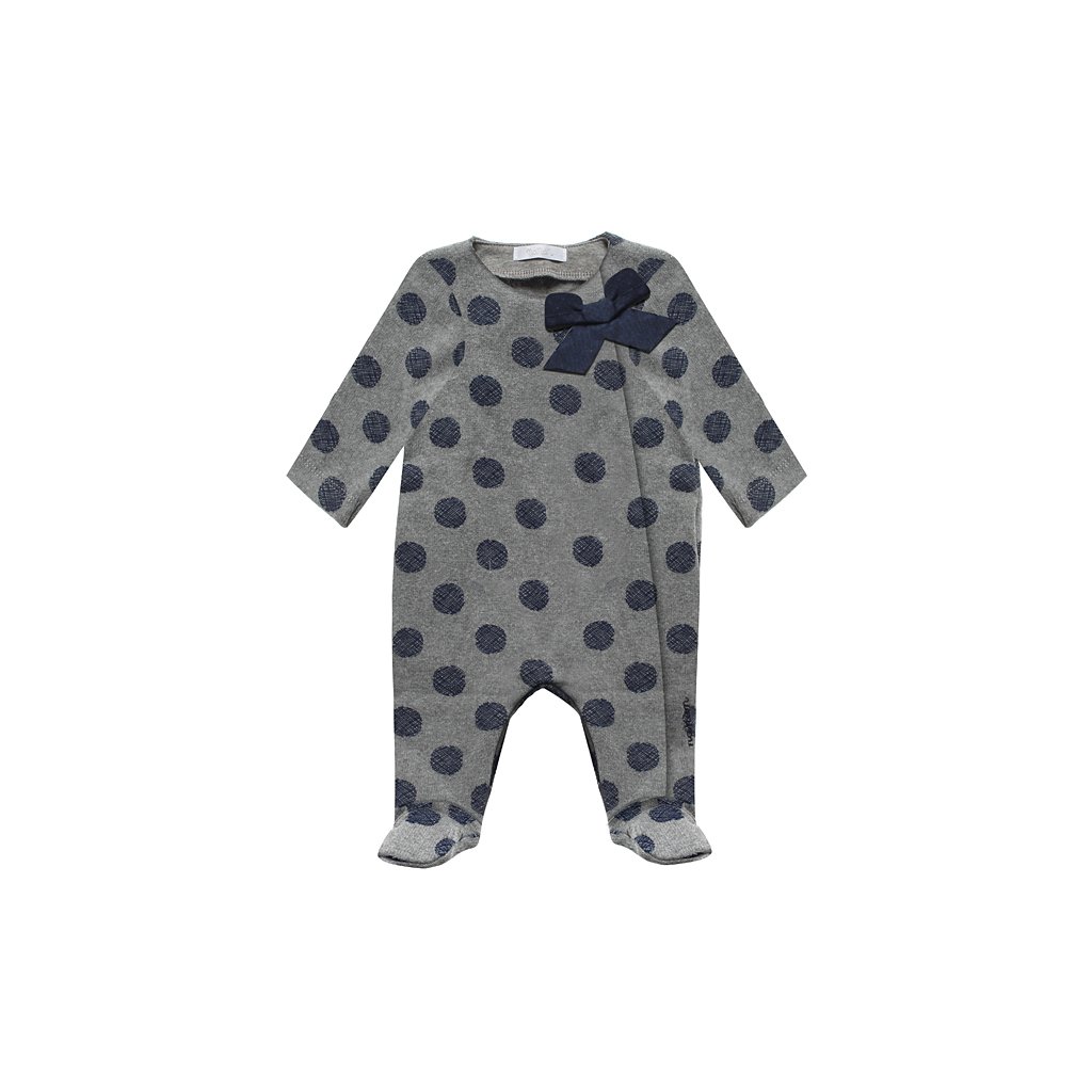 Nanán bodkované zimné dupačky s mašličkou – šedé, teplé a pohodlné