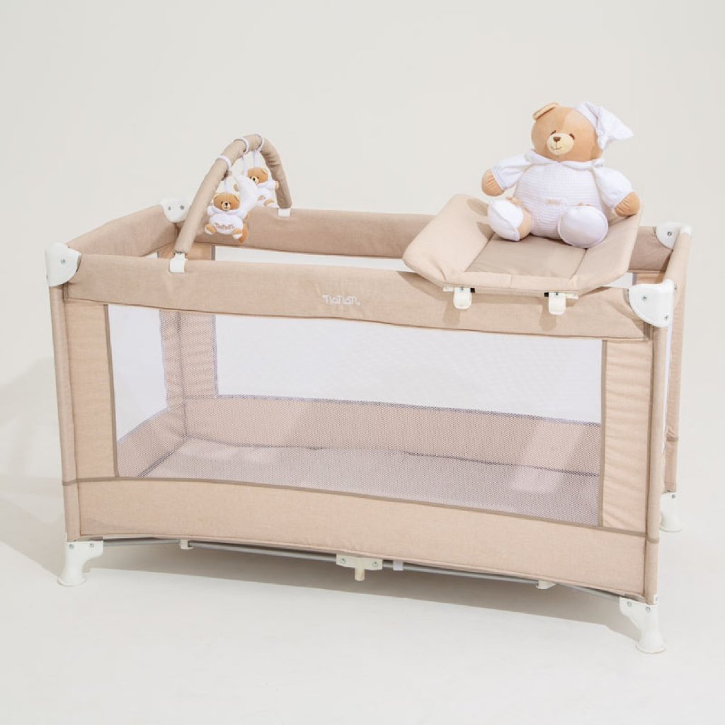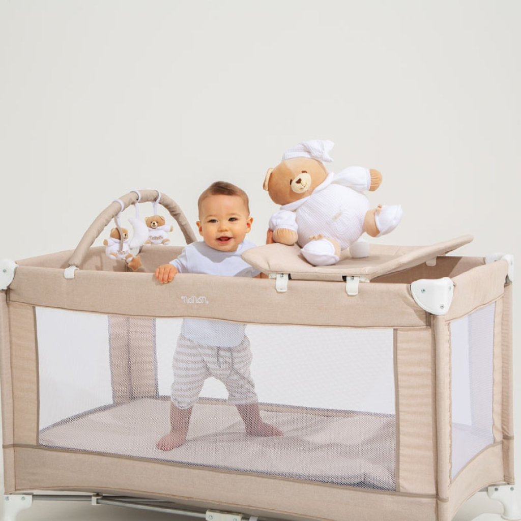 Doprajte svojmu bábätku pokojný spánok kdekoľvek s cestovnou postieľkou Nanán Tato. Je vybavená kolieskami pre jednoduché presúvanie a ponúka maximálne pohodlie aj bezpečnosť. Béžový dizajn s medvedíkom Tato krásne zapadne do každého interiéru.