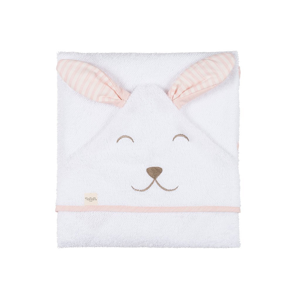 Zabaľte svoje bábätko do hebkého objatia s detskou froté osuškou Nanán Bunny v ružovej farbe. Extra mäkký a savý materiál zabezpečuje rýchle osušenie po kúpaní, zatiaľ čo roztomilá kapucňa s uškami dodáva osuške hravý vzhľad. Veľkosť 0-24mes.