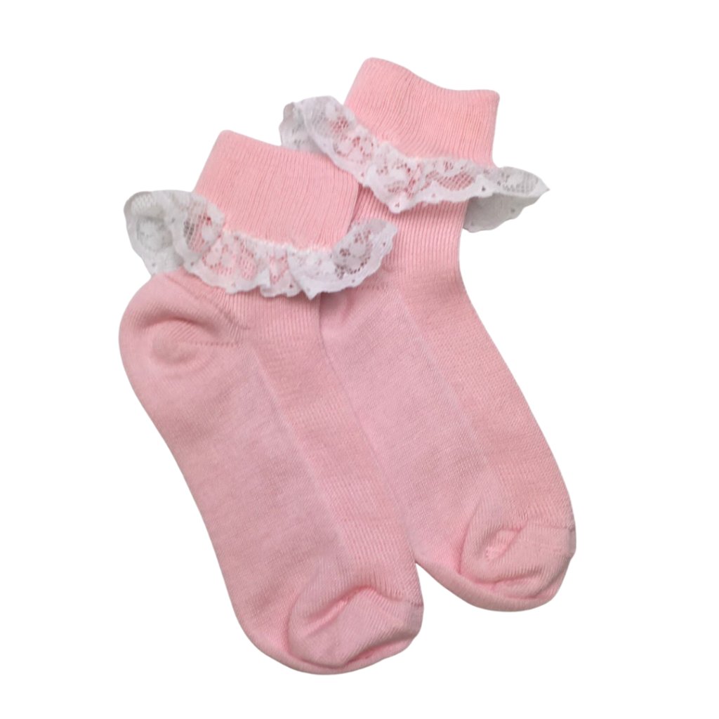 Dodajte outfitu vášho bábätka nežný a elegantný detail s ružovými detskými ponožkami Nanán zdobenými bielou čipkou. Mäkký materiál zabezpečuje maximálne pohodlie, zatiaľ čo jemná čipka dodáva ponožkám romantický a luxusný vzhľad. Dĺžka chodidla 11cm. Vyrobené v Taliansku z vysoko kvalitnej bavlny. Ideálne ako darček.