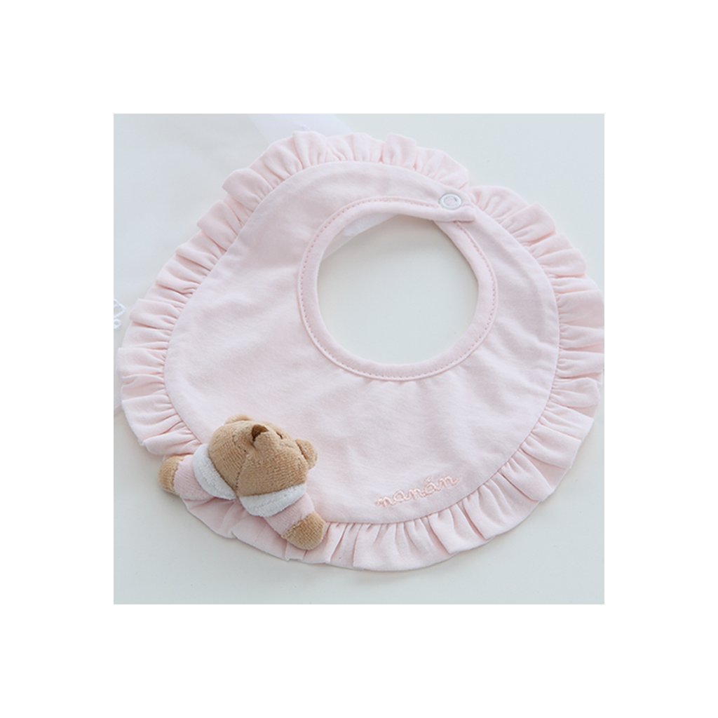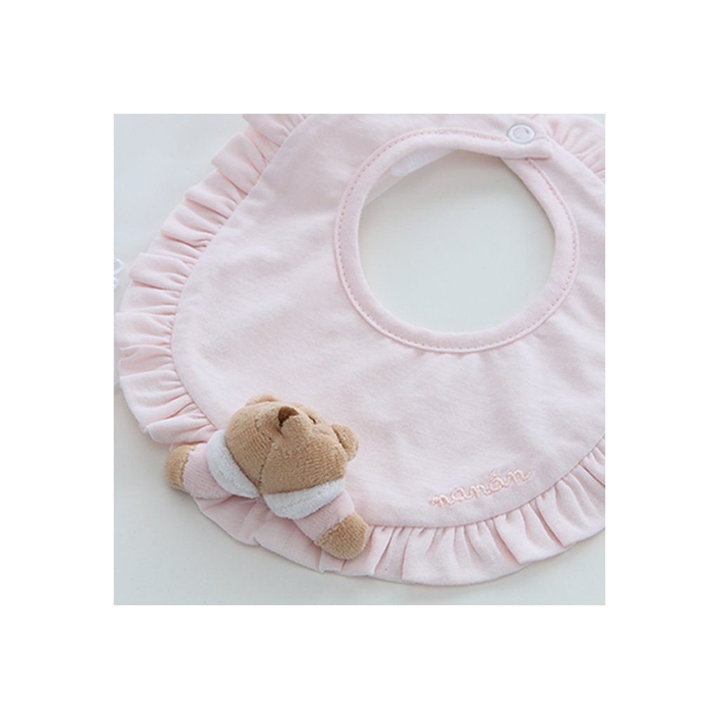 Nanán detský podbradník s medvedíkom Puccio – ružový, prvý darček pre bábätko