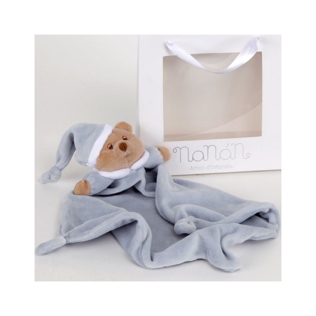 Nežný maznáčik, ktorý dáva bábätku pocit bezpečia a pohody! 💙 Maznáčik Nanán Puccio v jemnej modrej farbe je vyrobený z mäkučkého a príjemného materiálu, ideálneho na maznanie a upokojenie. Perfektný spoločník na zaspávanie a neoddeliteľný kamarát vášho bábätka. 🧸✨