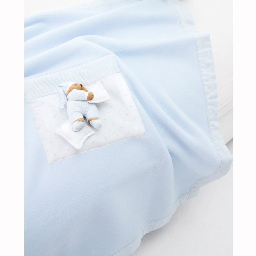 Teplá zimná fleecová deka zdobená medvedíkom Puccio, ktorý je roztomilým priateľom vášho dieťaťa, s ktorým môže snívať sladké sny. Svojím rozmerom je ideálna pre novorodenca a vhodná či už do kočíka alebo do postieľky.