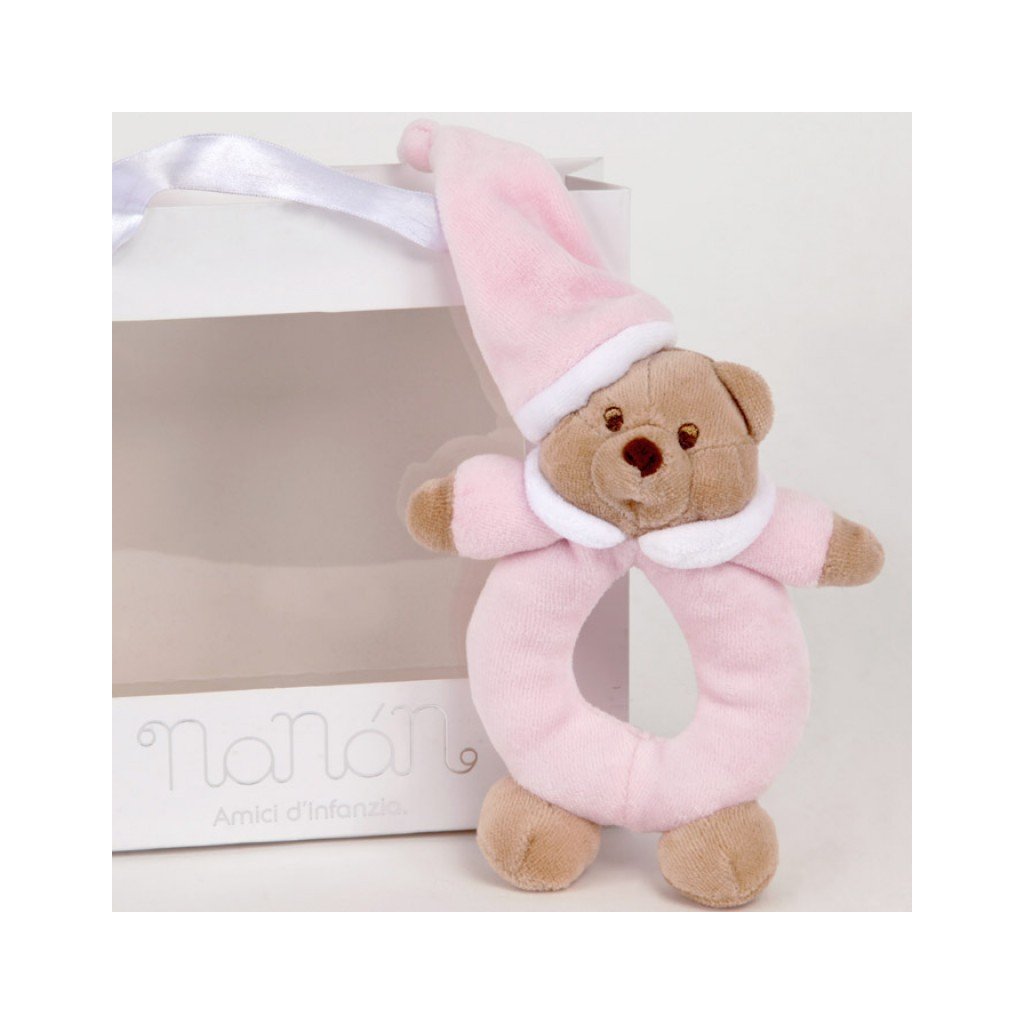 Nežná prvá hračka pre vaše bábätko! 🧸💕 Plyšová hrkálka Nanán – Macko Puccio v nežnej ružovej farbe je vyrobená z mäkkého a bezpečného materiálu, ktorý je ideálny pre malé detské ručičky. Jemný hrkajúci zvuk podnecuje zmysly a podporuje motorický vývoj bábätka. 🎶✨