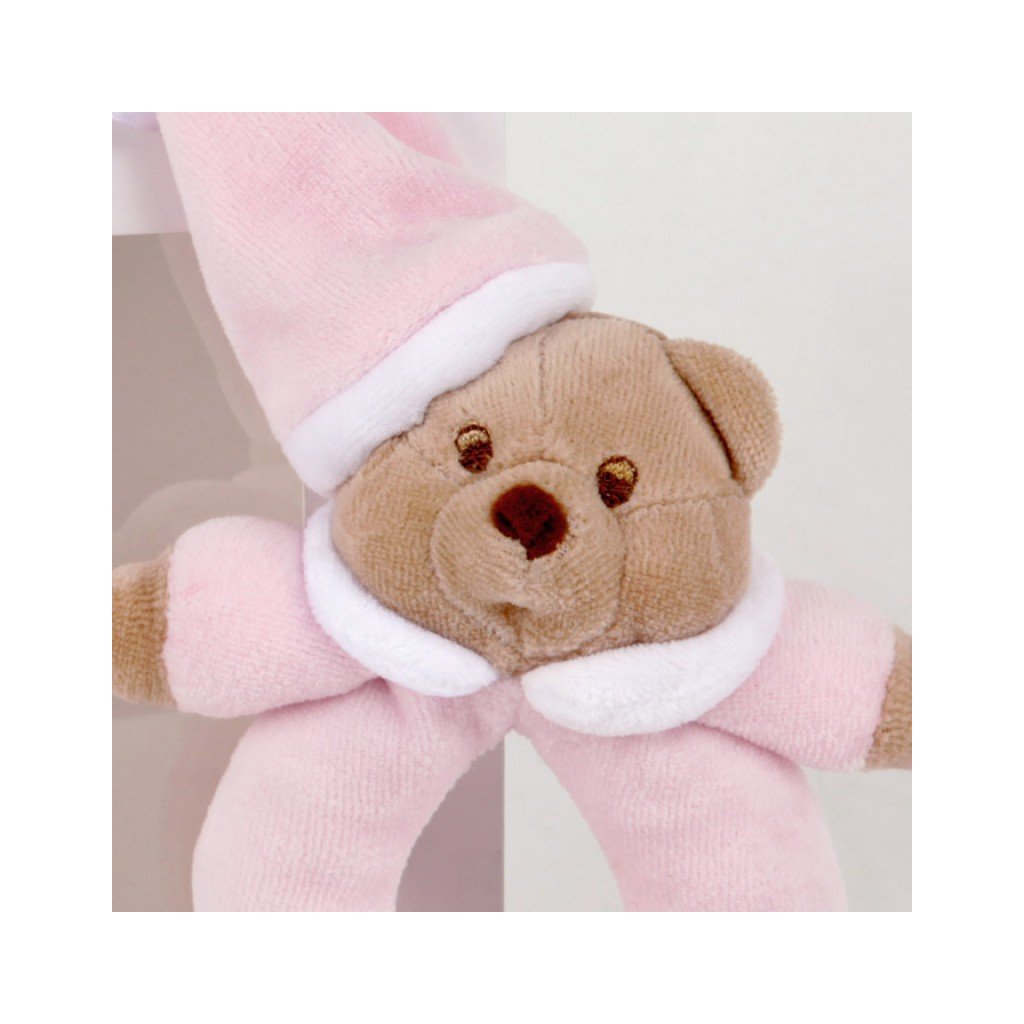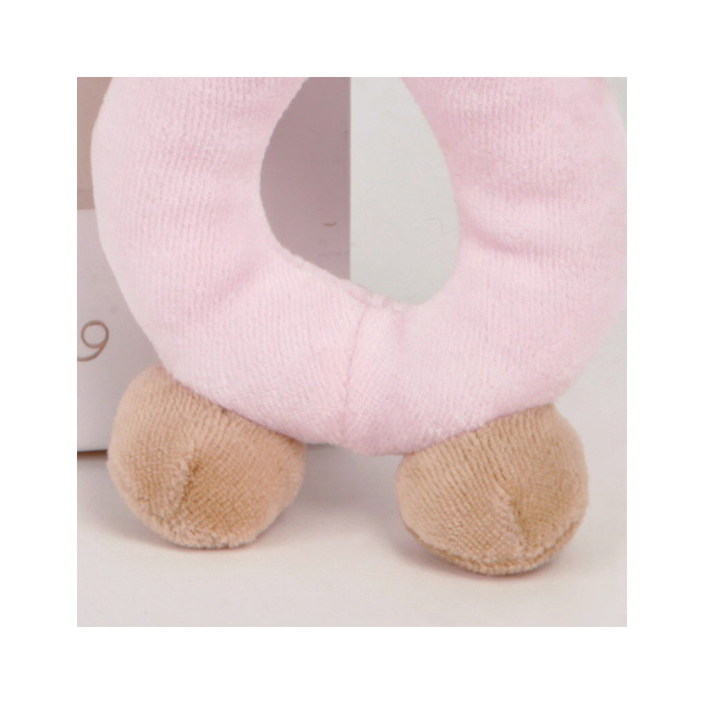 Nanán plyšová hrkálka – Macko Puccio ružová, jemná a bezpečná