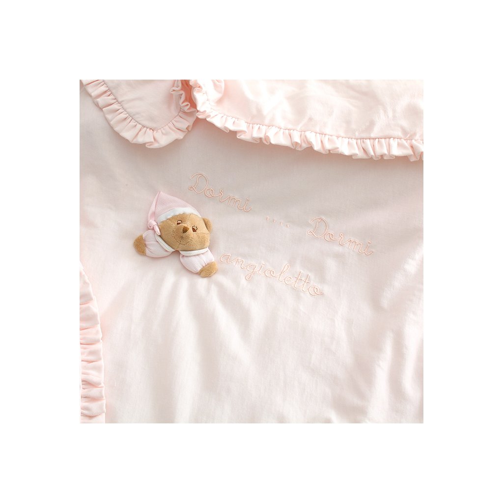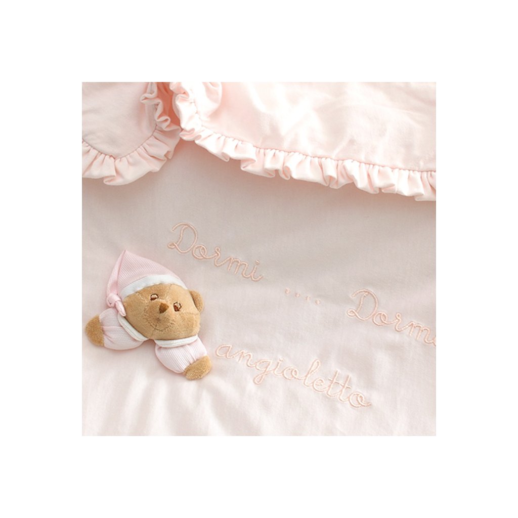 Kvalitná hebká bavlnená deka pre bábätko s volánikmi a dekoráciou nežného medvedíka kolekcie Puccio od talianskej prestížnej značky Nanán. Na výrobu je používaná luxusná bavlna s extra dlhými vláknami, vďaka čomu je neuveriteľne hladká, tenká, ľahučká a zároveň veľmi pevná. Svojou jemnosťou vás očarí! Má nielen luxusný vzhľad, ale má aj dlhšiu trvácnosť. Ideálna aj ako darček.