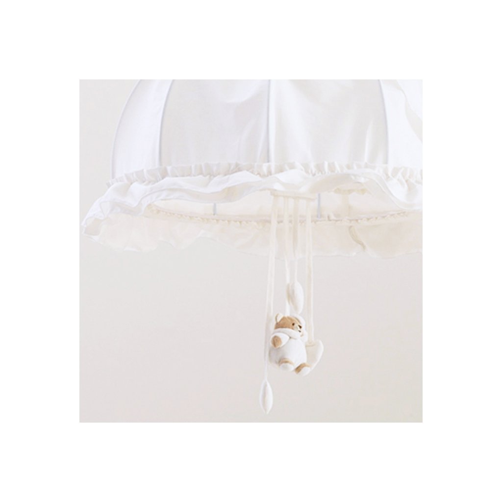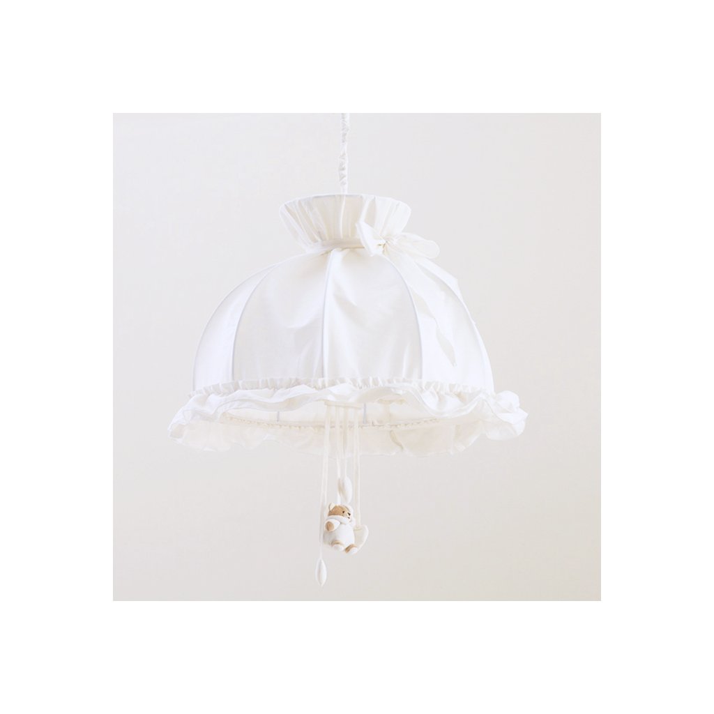 Detský luster do detskej izby s rozkošným medvedíkom Tato, ktorý vytvára jemné svetlo, aby sa vaše dieťa cítilo chránené a v bezpečí v spoločnosti svojich priateľov. Luster Tato má kovovú konštrukciu a tkanina je smotanovej farby, z ktorej visí rozkošný medvedík Tato, čo vytvára romantický súlad s ostatnými doplnkami v detskej izbe.