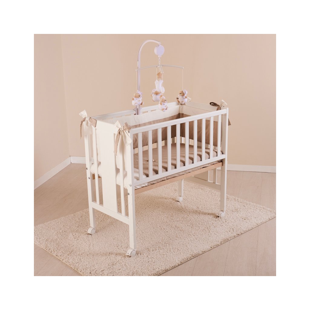 Rozkošná mini detská postieľka s matracom vhodná pre bábätko počas prvých mesiacov. Svojimi funkciami je vhodná pre jednoduchšie a pohodlnejšie presúvanie bábätka po dome alebo byte, najmä v prvých mesiacoch. Detská postieľka je skvelá na používanie v tesnej blízkosti postele rodičov so stiahnutou bočnicou. Rodičia tak nemusia počas noci vstávať k svojmu dieťaťu, keď potrebuje cítiť ich blízkosť. Nastaviteľný rošt sa dá nastaviť do troch polôh. Súčasťou postieľky sú pogumované kvalitné kolieska, pričom nohy postieľky majú predvŕtané otvory na upevnenie koliesok. Kvalitné kolieska sú pogumované, vďaka čomu sú pri presúvaní veľmi tiché a nepoškriabu podlahu, pričom 2 kolieska majú brzdový systém. Postieľku je možné používať do 15kg dieťaťa.