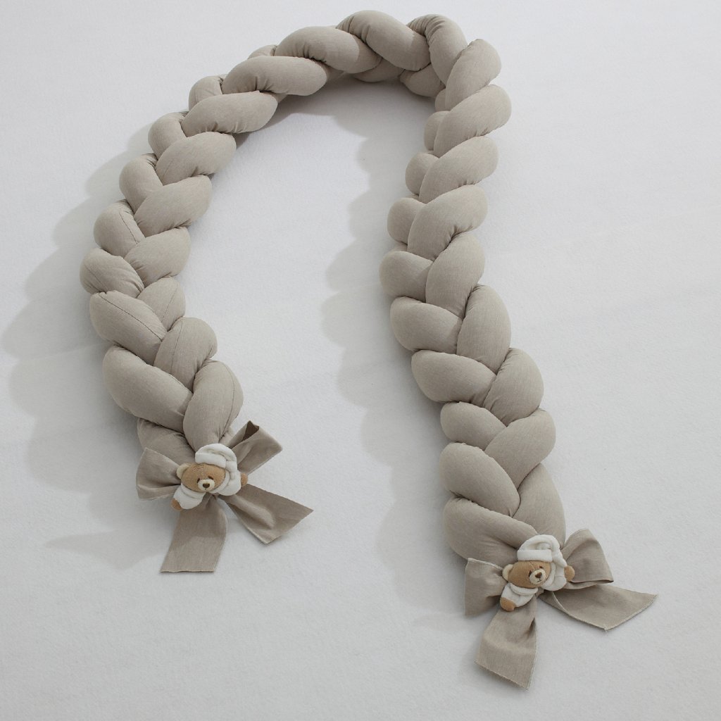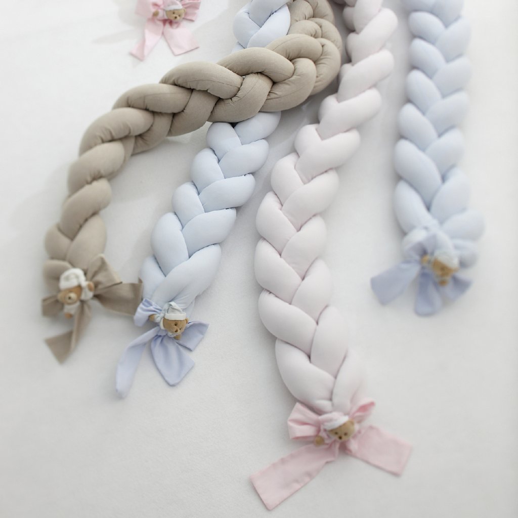 Tkaná redukcia do detskej postieľky Nanán zdobená romantickými mašličkami a sladkým plyšovým Tato. Medvedík Tato tak stráži detské sny. Dostupný v 3 farbách.