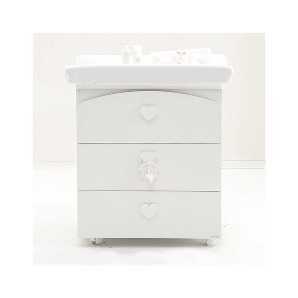 Pult je veľmi pevný a umožňuje pohodlné prebaľovanie až do 12 mesiacov bábätka. Na vrchnej časti pultu je mäkká PVC podložka v bielej farbe, ktorá je vybavená dvoma vyvýšenými bezpečnostnými stranami. PVC prebaľovacia podložka je na pocit chladná, preto odporúčame dokúpiť si bavlnený alebo froté poťah, resp. bavlnené mušelínové plienky, ktoré sú z príjemných a hrejivých materiálov, čím sa zabezpečí dokonalý komfort pri prebaľovaní bábätka.
