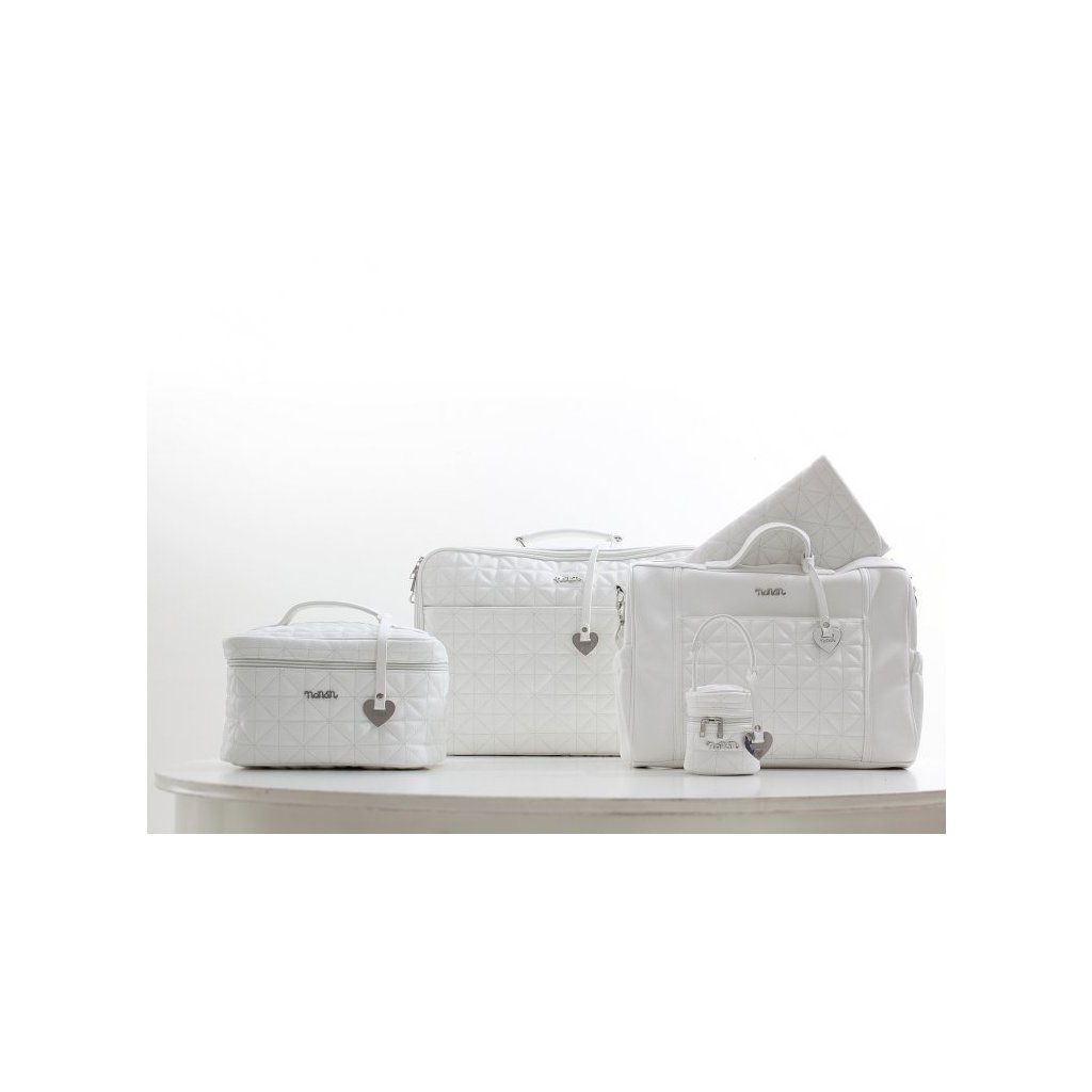 Cestovná taška pre mamičku je úplne pokrytá jemnou Eco kožou. Má jednu hlavnú priehradku na zips s vnútornými a vonkajšími vreckami pre bezpečné a jednoduché uloženie nevyhnutných vecí. Má dve krátke rukoväte na prenášanie a nastaviteľný odnímateľný ramenný popruh. Dodáva sa s podložkou na prebaľovanie.