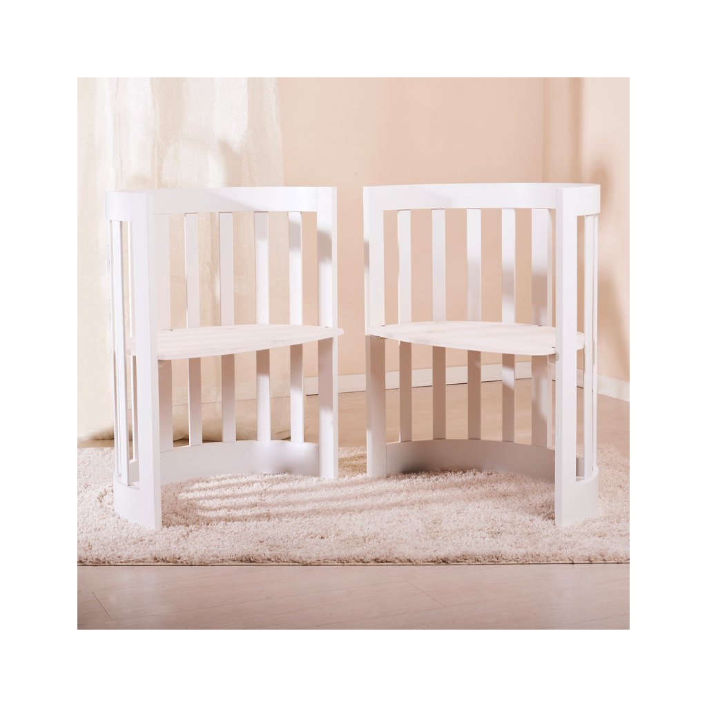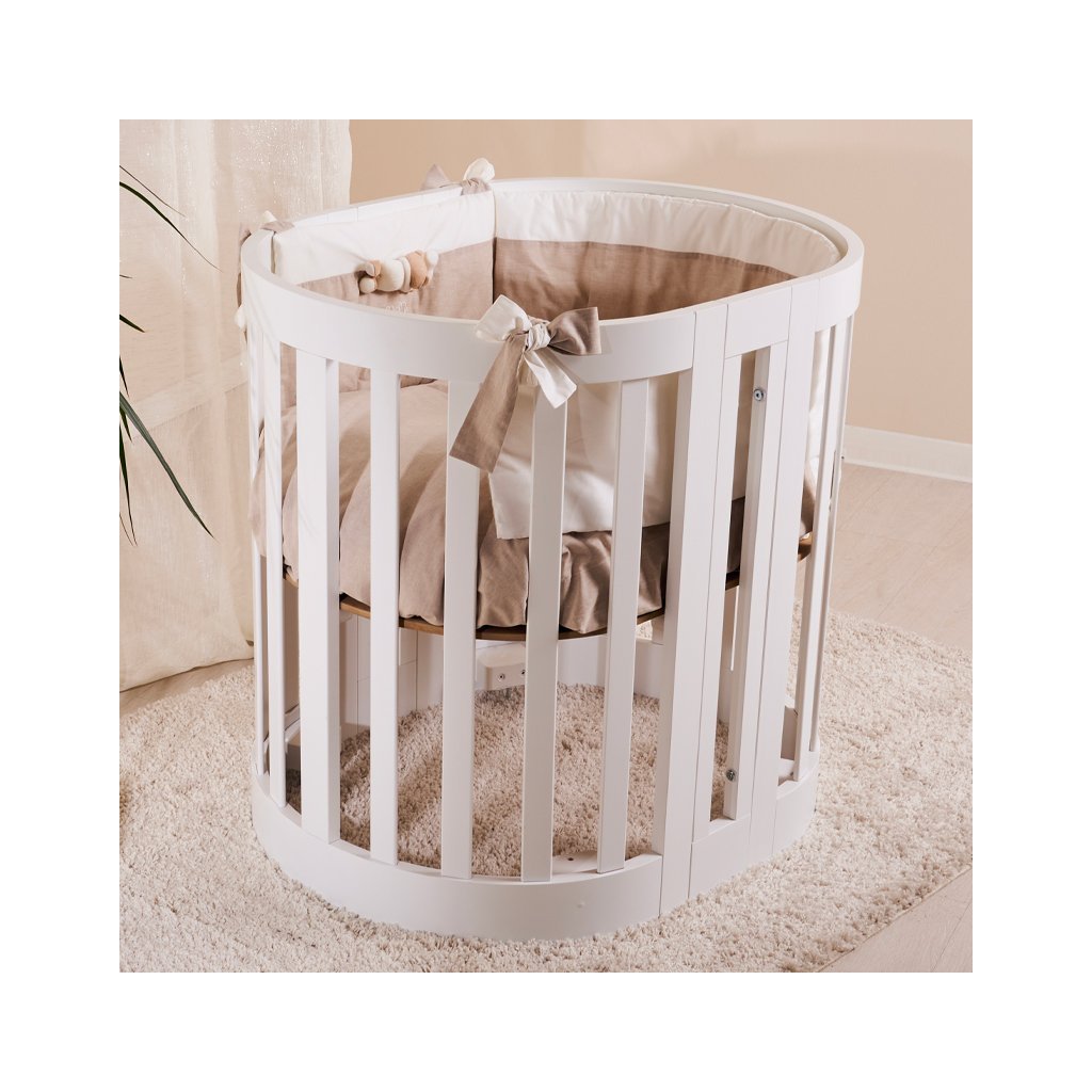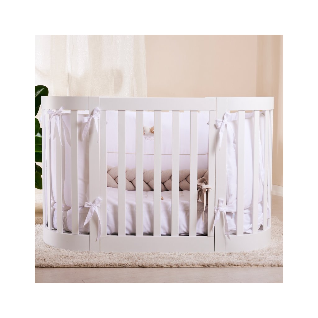 Nanán detská prestaviteľná oválna postieľka s matracom (3v1) biela