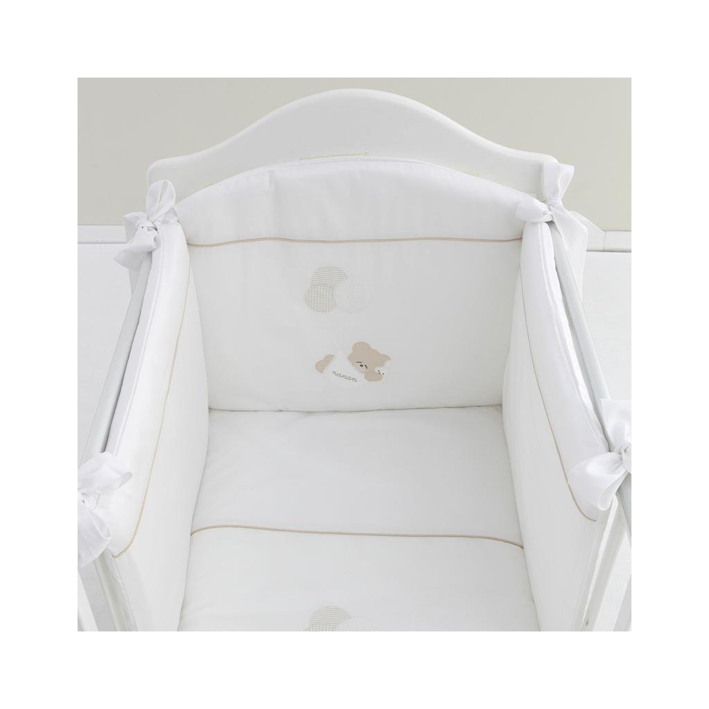 Ochranný mantinel v postieľke chráni dieťa pred nárazmi. Mantinel chráni je vybavený zipsom a vyplnený špeciálnou antialergickou výplňou zo silikónového vlákna, ktorá je priedušná a pružná. Mantinel je vyrobený z jedného kusa, je ideálny pre všetky talianske postieľky a vďaka rozkošným mašličkám sa dá priviazať k rámu postieľky.