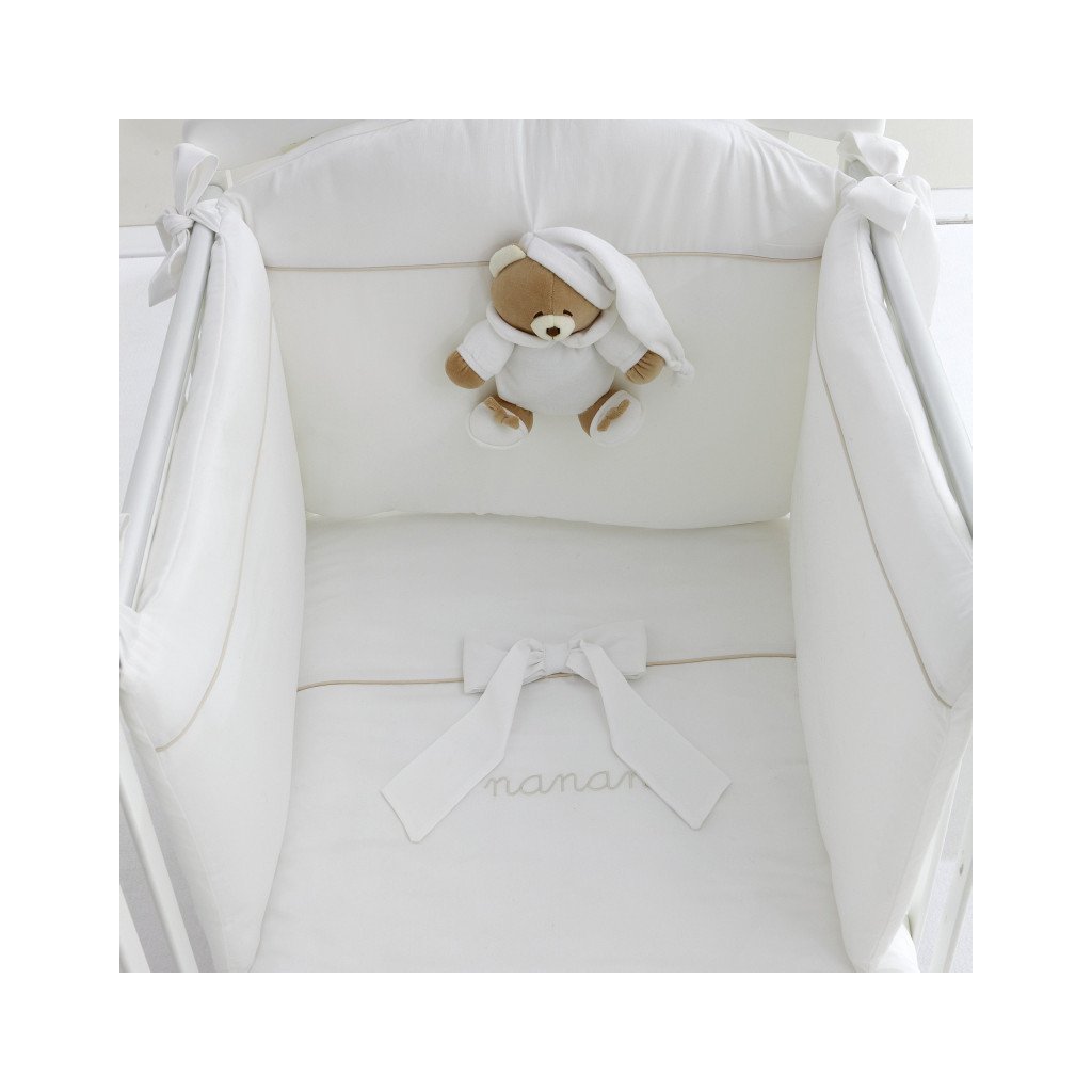 Ochranný mantinel v postieľke chráni dieťa pred nárazmi. Mantinel chráni je vybavený zipsom a vyplnený špeciálnou antialergickou výplňou zo silikónového vlákna, ktorá je priedušná a pružná. Mantinel je vyrobený z jedného kusa, je ideálny pre všetky talianske postieľky a vďaka rozkošným mašličkám sa dá priviazať k rámu postieľky.