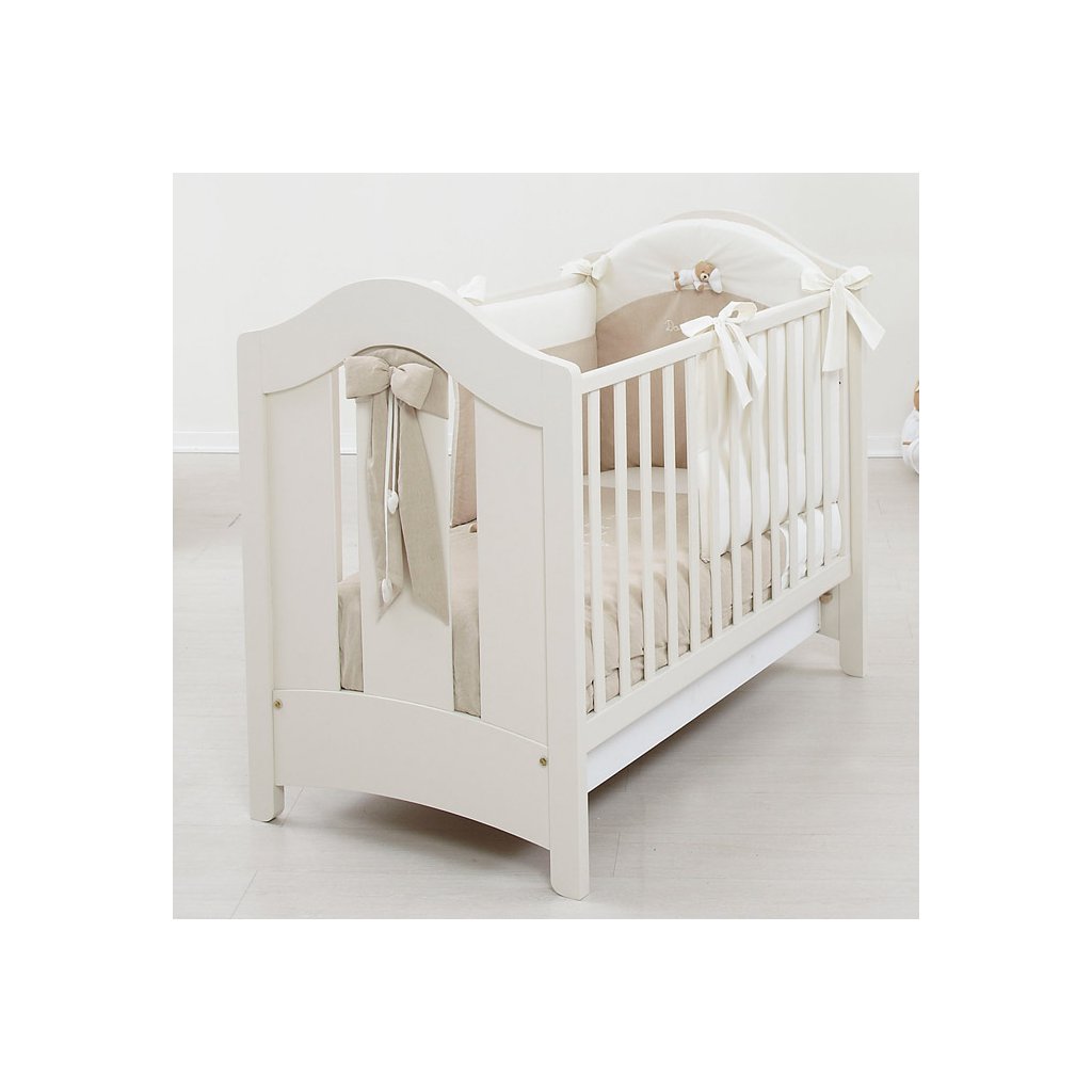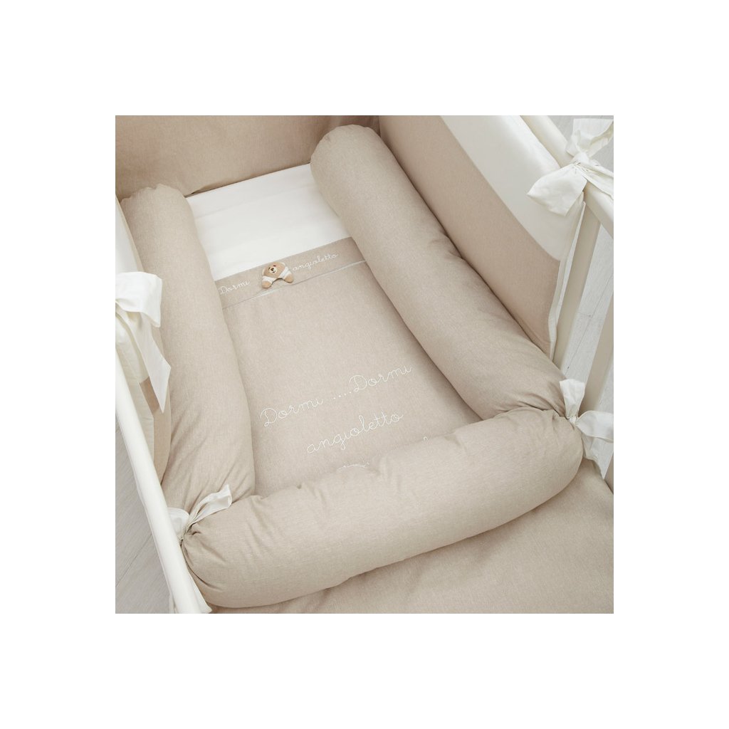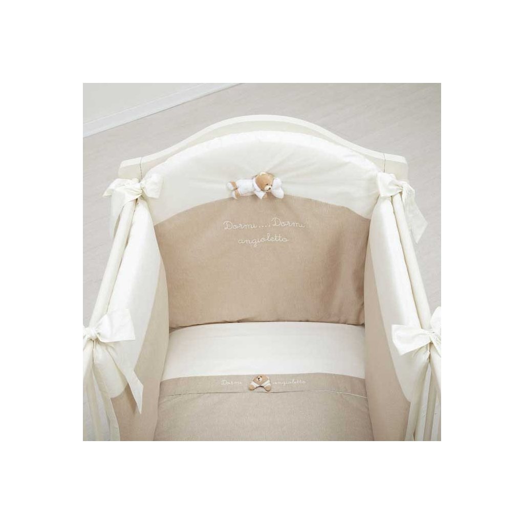 Ochranný mantinel v postieľke chráni dieťa pred nárazmi. Mantinel chráni je vybavený zipsom a vyplnený špeciálnou antialergickou výplňou zo silikónového vlákna, ktorá je priedušná a pružná. Mantinel je vyrobený z jedného kusa, je ideálny pre všetky talianske postieľky a vďaka rozkošným mašličkám sa dá priviazať k rámu postieľky.