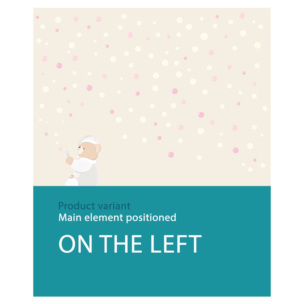 Nanán tapeta na mieru s medvedíkom Tato, ktorý sa hrá s bublinkami. Možnosť výberu umiestnenia medvedíka Tato - vpravo alebo vľavo. Polohu je potrebné zadať do poznámky v pri objednávke tapety.