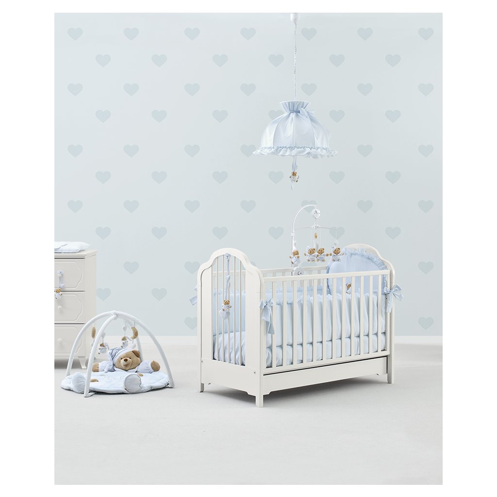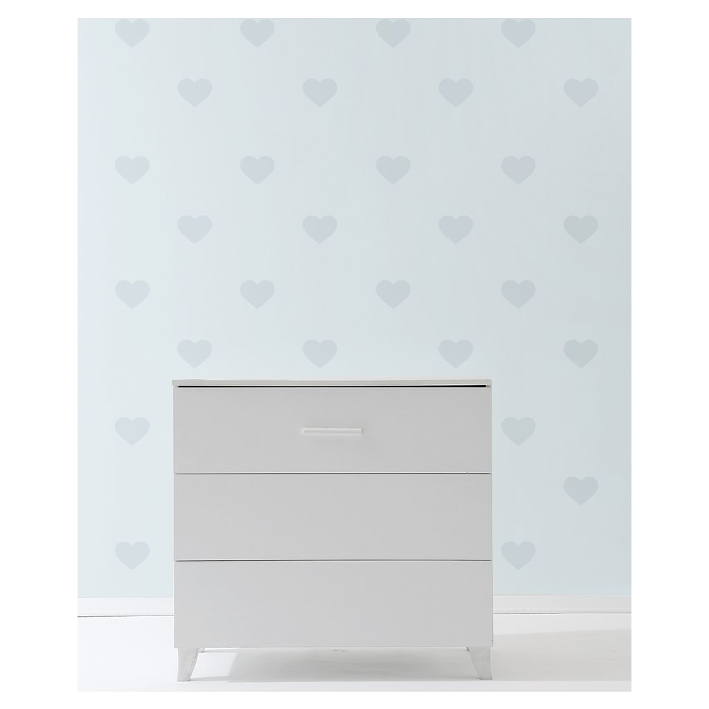 Krásna srdiečková tapeta, ktorá dodá izbičke krásu a eleganciu. Dostupná v 4 farbách: ružová, béžová, modrá a bledomodrá