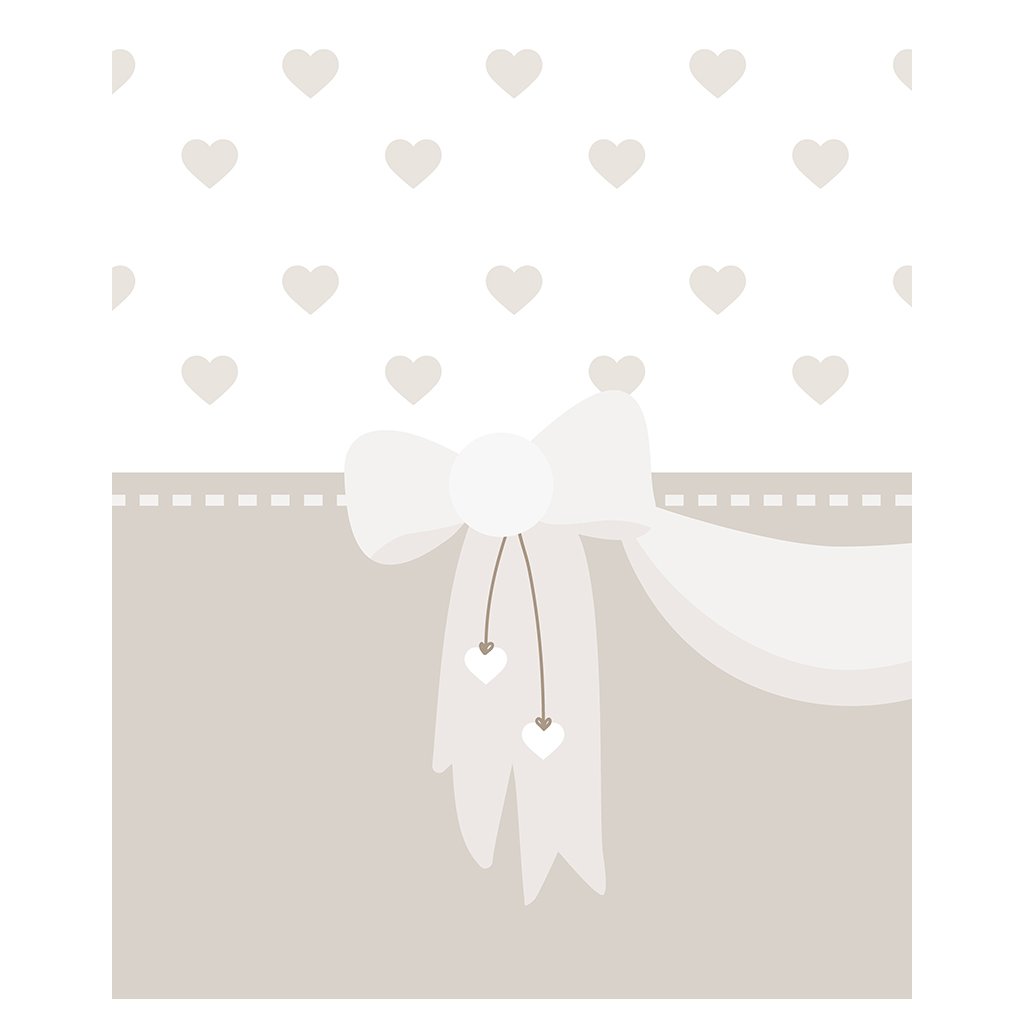 Tapeta Tato je personalizovaná tapeta na mieru s medvedíkom Tato, ktorý drží stužku s menom dieťatka, s ktorým bude zdieľať izbu. Dostupná vo farbách: béžová, modrá a ružová.