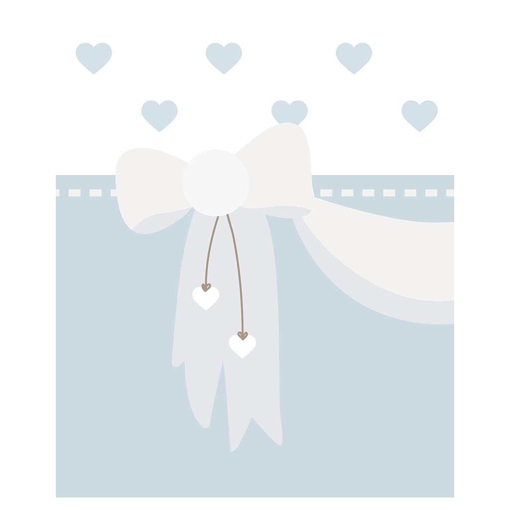 Tapeta Tato je personalizovaná tapeta na mieru s medvedíkom Tato, ktorý drží stužku s menom dieťatka, s ktorým bude zdieľať izbu. Dostupná vo farbách: béžová, modrá a ružová.
