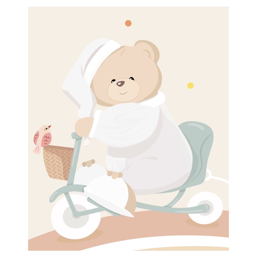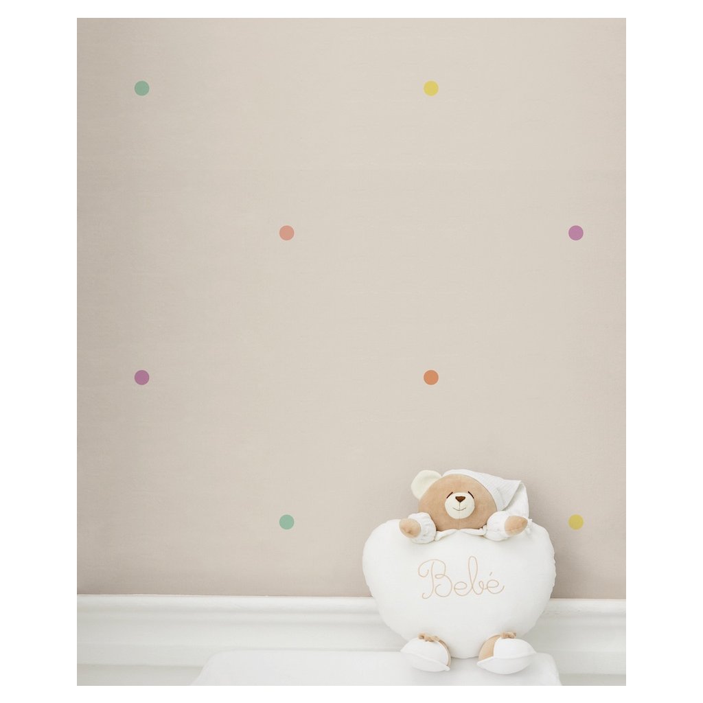 Hravá a veselá tapeta na mieru s medvedíkom Tato s farebnými guličkami. Jemné a teplé farby sú ideálne pre detské izby chlapcov aj dievčat.