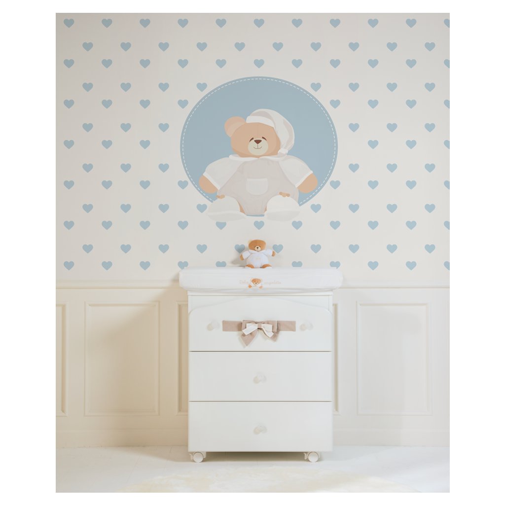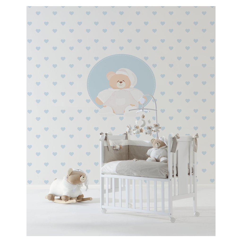 Roztomilá Nanán tapeta na mieru s medvedíkom Tato, ktorý je obklopený srdiečkami. Tapeta dodá detskej izbičke to správne čaro detského kráľovstva.