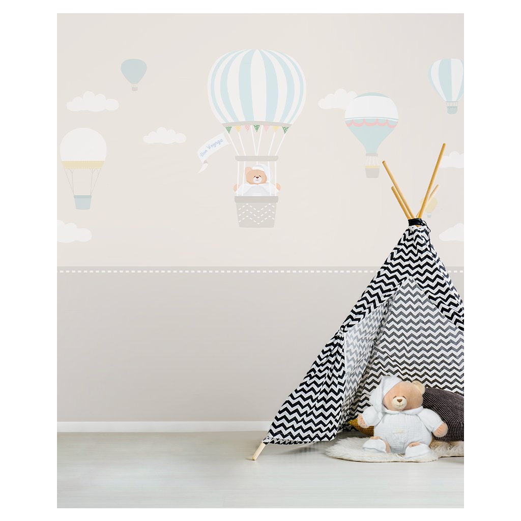 Nanán tapeta na mieru s medvedíkom Tato, ktorý letí v balóne v oblakoch. Možnosť výberu umiestnenia medvedíka Tato v strede, vpravo alebo vľavo. Polohu je potrebné zadať do poznámky v pri objednávke tapety.