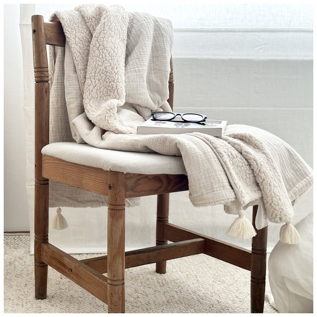 Obojstranná mušelínová deka - prehoz natural je útulným doplnkom interiéru, ale aj hrejivou pokrývkou na chladnejšie večery.