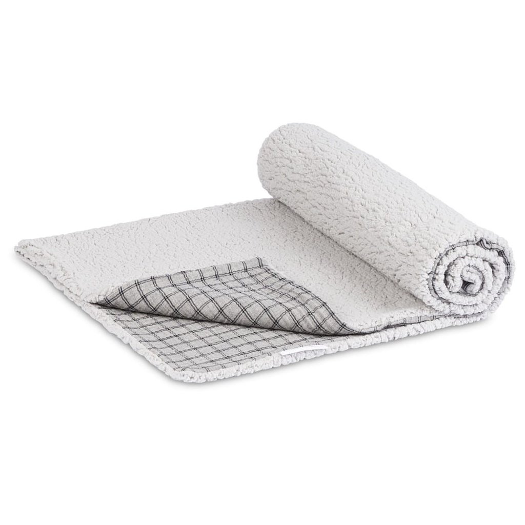 Obojstranná deka mušelín a umelá kožušina sivá kocka