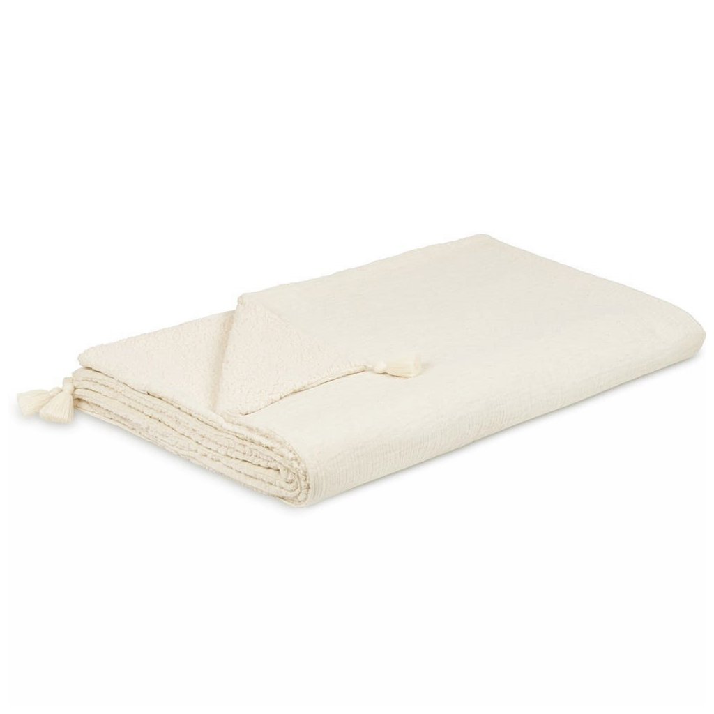 Obojstranná mušelínová deka - prehoz vanilka je útulným doplnkom interiéru, ale aj hrejivou pokrývkou na chladnejšie večery.