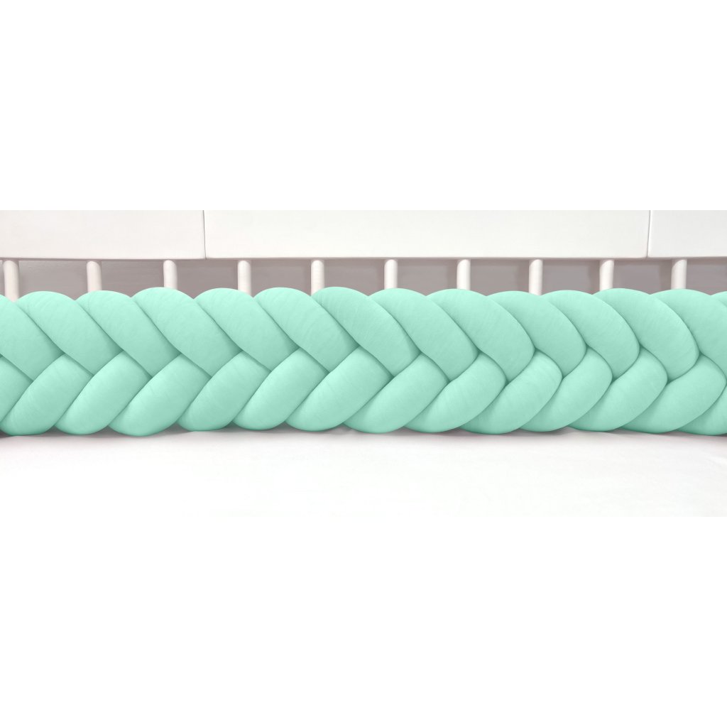 Plyšový ochranný zapletaný mantinel - pletenec päťkový slúži ako ochranca vášho dieťatka v postieľke a zároveň ako štýlový doplnok v detskej izbe. Pletenec má sadu ozdobných stúh na pripevnenie. Výška cca 22 cm, hrúbka cca 10 cm. Mantinel je dostupný v rôznych dĺžkach (od 120 cm do 400 cm). Všetky pramene sú vyrobené z kvalitného Prémium bavlneného velúru (certifikát Oeko Tex Standard 100) a ručne spletené do vrkoča. Záruka najvyššej kvality – 100% Handmade. Farba: bledomätová, číslo vo vzorkovníku: 12.