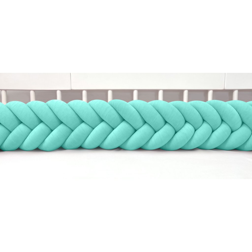 Plyšový ochranný zapletaný mantinel - pletenec päťkový slúži ako ochranca vášho dieťatka v postieľke a zároveň ako štýlový doplnok v detskej izbe. Pletenec má sadu ozdobných stúh na pripevnenie. Výška cca 22 cm, hrúbka cca 10 cm. Mantinel je dostupný v rôznych dĺžkach (od 120 cm do 400 cm). Všetky pramene sú vyrobené z kvalitného Prémium bavlneného velúru (certifikát Oeko Tex Standard 100) a ručne spletené do vrkoča. Záruka najvyššej kvality – 100% Handmade. Farba: mätová, číslo vo vzorkovníku: 28.
