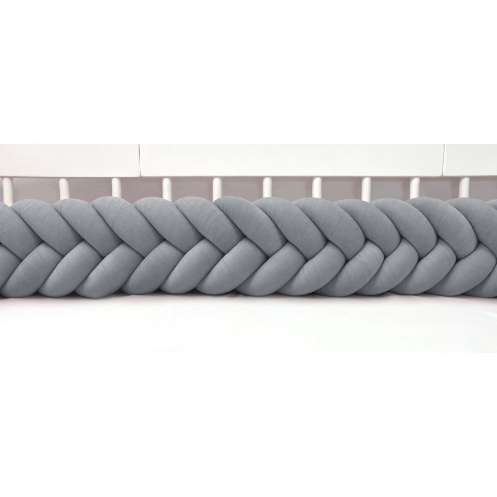 Plyšový ochranný zapletaný mantinel - pletenec päťkový slúži ako ochranca vášho dieťatka v postieľke a zároveň ako štýlový doplnok v detskej izbe. Pletenec má sadu ozdobných stúh na pripevnenie. Výška cca 22 cm, hrúbka cca 10 cm. Mantinel je dostupný v rôznych dĺžkach (od 120 cm do 400 cm). Všetky pramene sú vyrobené z kvalitného Prémium bavlneného velúru (certifikát Oeko Tex Standard 100) a ručne spletené do vrkoča. Záruka najvyššej kvality – 100% Handmade. Farba: tmavošedá, číslo vo vzorkovníku: 19.