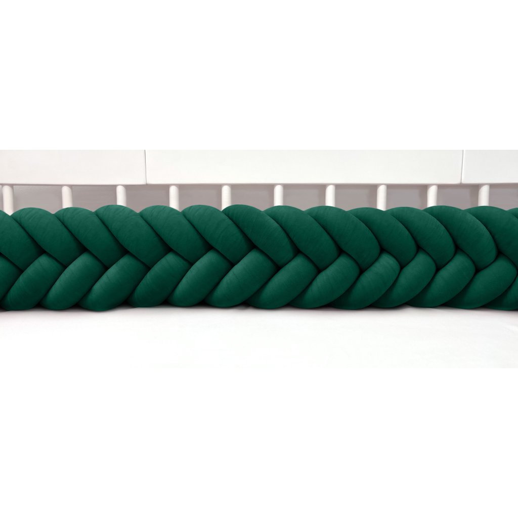 Plyšový ochranný zapletaný mantinel - pletenec päťkový slúži ako ochranca vášho dieťatka v postieľke a zároveň ako štýlový doplnok v detskej izbe. Pletenec má sadu ozdobných stúh na pripevnenie. Výška cca 22 cm, hrúbka cca 10 cm. Mantinel je dostupný v rôznych dĺžkach (od 120 cm do 400 cm). Všetky pramene sú vyrobené z kvalitného Prémium bavlneného velúru (certifikát Oeko Tex Standard 100) a ručne spletené do vrkoča. Záruka najvyššej kvality – 100% Handmade. Farba: tmavozelená, číslo vo vzorkovníku: 21.