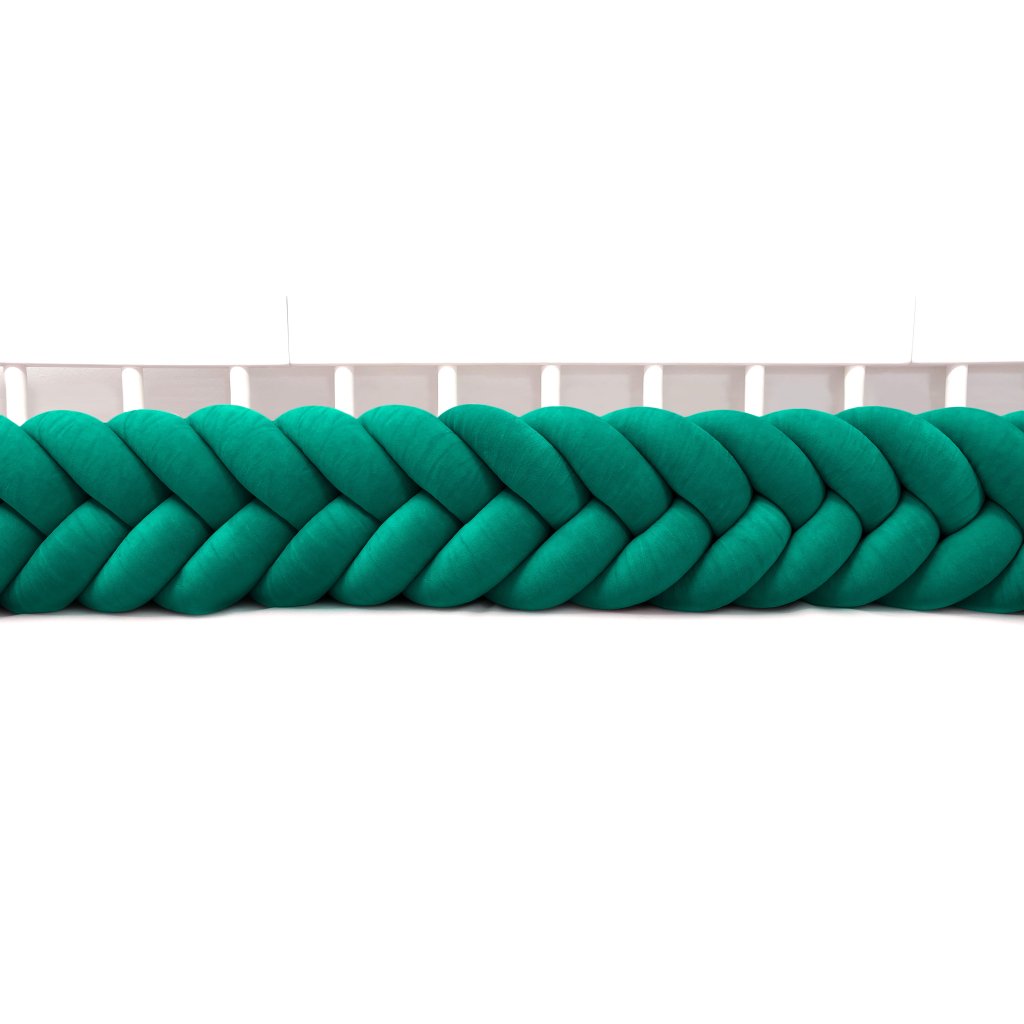 Plyšový ochranný zapletaný mantinel - pletenec päťkový slúži ako ochranca vášho dieťatka v postieľke a zároveň ako štýlový doplnok v detskej izbe. Pletenec má sadu ozdobných stúh na pripevnenie. Výška cca 22 cm, hrúbka cca 10 cm. Mantinel je dostupný v rôznych dĺžkach (od 120 cm do 400 cm). Všetky pramene sú vyrobené z kvalitného Prémium bavlneného velúru (certifikát Oeko Tex Standard 100) a ručne spletené do vrkoča. Záruka najvyššej kvality – 100% Handmade. Farba: zelená, číslo vo vzorkovníku: 20.