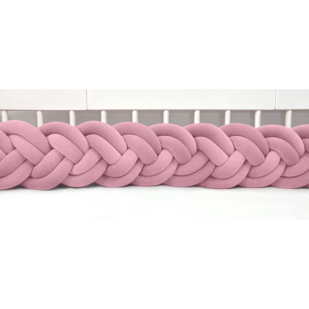 Plyšový ochranný zapletaný mantinel - pletenec šesťkový slúži ako ochranca vášho dieťatka v postieľke a zároveň ako štýlový doplnok v detskej izbe. Pletenec má sadu ozdobných stúh na pripevnenie. Výška cca 30 cm, hrúbka cca 10 cm. Mantinel je dostupný v rôznych dĺžkach (od 120 cm do 400 cm). Všetky pramene sú vyrobené z kvalitného Prémium bavlneného velúru (certifikát Oeko Tex Standard 100) a ručne spletené do vrkoča. Záruka najvyššej kvality – 100% Handmade. Farba: bledo staroružová, číslo vo vzorkovníku: 09.