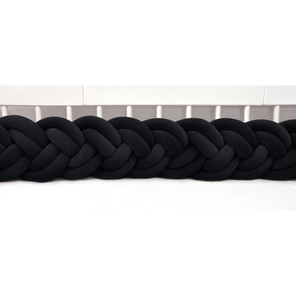 Plyšový ochranný zapletaný mantinel - pletenec šesťkový slúži ako ochranca vášho dieťatka v postieľke a zároveň ako štýlový doplnok v detskej izbe. Pletenec má sadu ozdobných stúh na pripevnenie. Výška cca 30 cm, hrúbka cca 10 cm. Mantinel je dostupný v rôznych dĺžkach (od 120 cm do 400 cm). Všetky pramene sú vyrobené z kvalitného Prémium bavlneného velúru (certifikát Oeko Tex Standard 100) a ručne spletené do vrkoča. Záruka najvyššej kvality – 100% Handmade. Farba: čierny, číslo vo vzorkovníku: 16.