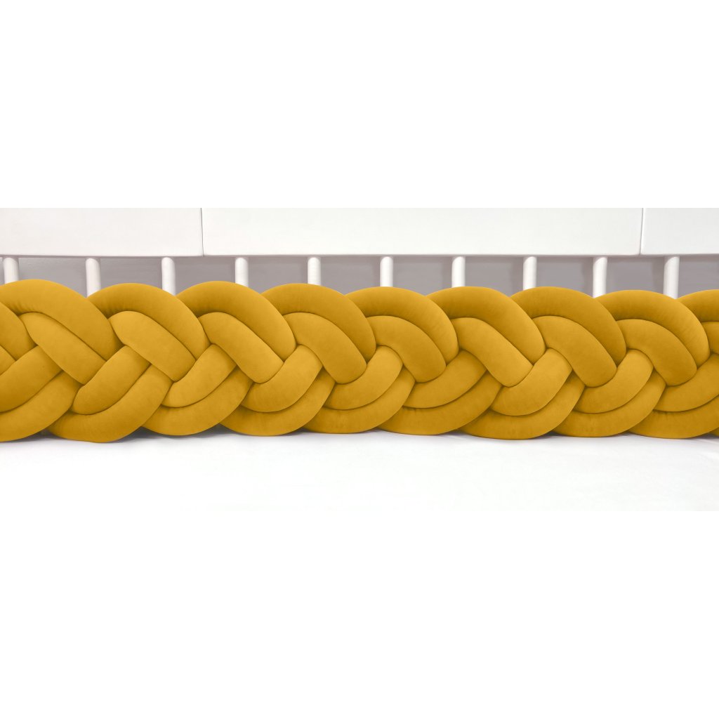 Plyšový ochranný zapletaný mantinel - pletenec šesťkový slúži ako ochranca vášho dieťatka v postieľke a zároveň ako štýlový doplnok v detskej izbe. Pletenec má sadu ozdobných stúh na pripevnenie. Výška cca 30 cm, hrúbka cca 10 cm. Mantinel je dostupný v rôznych dĺžkach (od 120 cm do 400 cm). Všetky pramene sú vyrobené z kvalitného Prémium bavlneného velúru (certifikát Oeko Tex Standard 100) a ručne spletené do vrkoča. Záruka najvyššej kvality – 100% Handmade. Farba: horčicová, číslo vo vzorkovníku: 25.