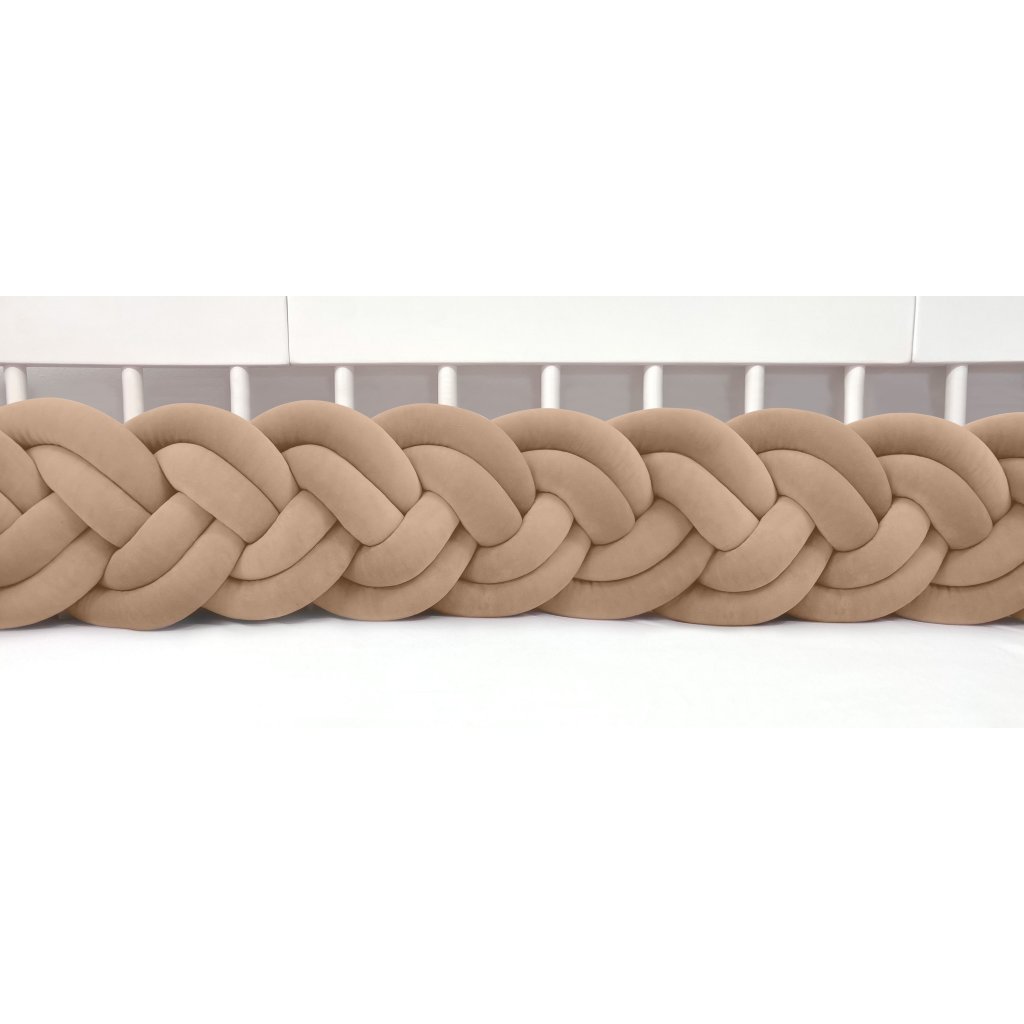 Plyšový ochranný zapletaný mantinel - pletenec šesťkový slúži ako ochranca vášho dieťatka v postieľke a zároveň ako štýlový doplnok v detskej izbe. Pletenec má sadu ozdobných stúh na pripevnenie. Výška cca 30 cm, hrúbka cca 10 cm. Mantinel je dostupný v rôznych dĺžkach (od 120 cm do 400 cm). Všetky pramene sú vyrobené z kvalitného Prémium bavlneného velúru (certifikát Oeko Tex Standard 100) a ručne spletené do vrkoča. Záruka najvyššej kvality – 100% Handmade. Farba: karamelová, číslo vo vzorkovníku: 06.