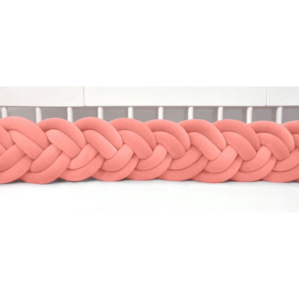 Plyšový ochranný zapletaný mantinel - pletenec šesťkový slúži ako ochranca vášho dieťatka v postieľke a zároveň ako štýlový doplnok v detskej izbe. Pletenec má sadu ozdobných stúh na pripevnenie. Výška cca 30 cm, hrúbka cca 10 cm. Mantinel je dostupný v rôznych dĺžkach (od 120 cm do 400 cm). Všetky pramene sú vyrobené z kvalitného Prémium bavlneného velúru (certifikát Oeko Tex Standard 100) a ručne spletené do vrkoča. Záruka najvyššej kvality – 100% Handmade. Farba: marhulová, číslo vo vzorkovníku: 27.