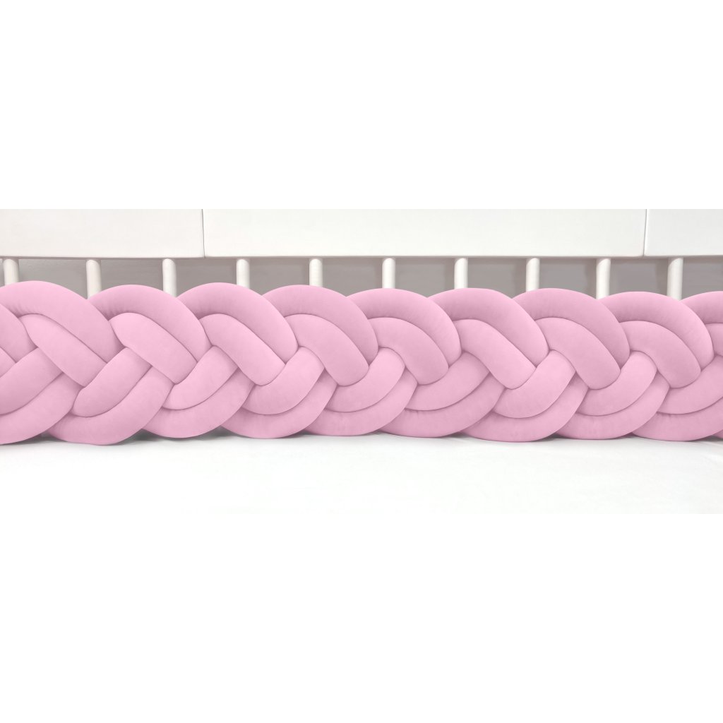 Plyšový ochranný zapletaný mantinel - pletenec šesťkový slúži ako ochranca vášho dieťatka v postieľke a zároveň ako štýlový doplnok v detskej izbe. Pletenec má sadu ozdobných stúh na pripevnenie. Výška cca 30 cm, hrúbka cca 10 cm. Mantinel je dostupný v rôznych dĺžkach (od 120 cm do 400 cm). Všetky pramene sú vyrobené z kvalitného Prémium bavlneného velúru (certifikát Oeko Tex Standard 100) a ručne spletené do vrkoča. Záruka najvyššej kvality – 100% Handmade. Farba: ružová, číslo vo vzorkovníku: 07.