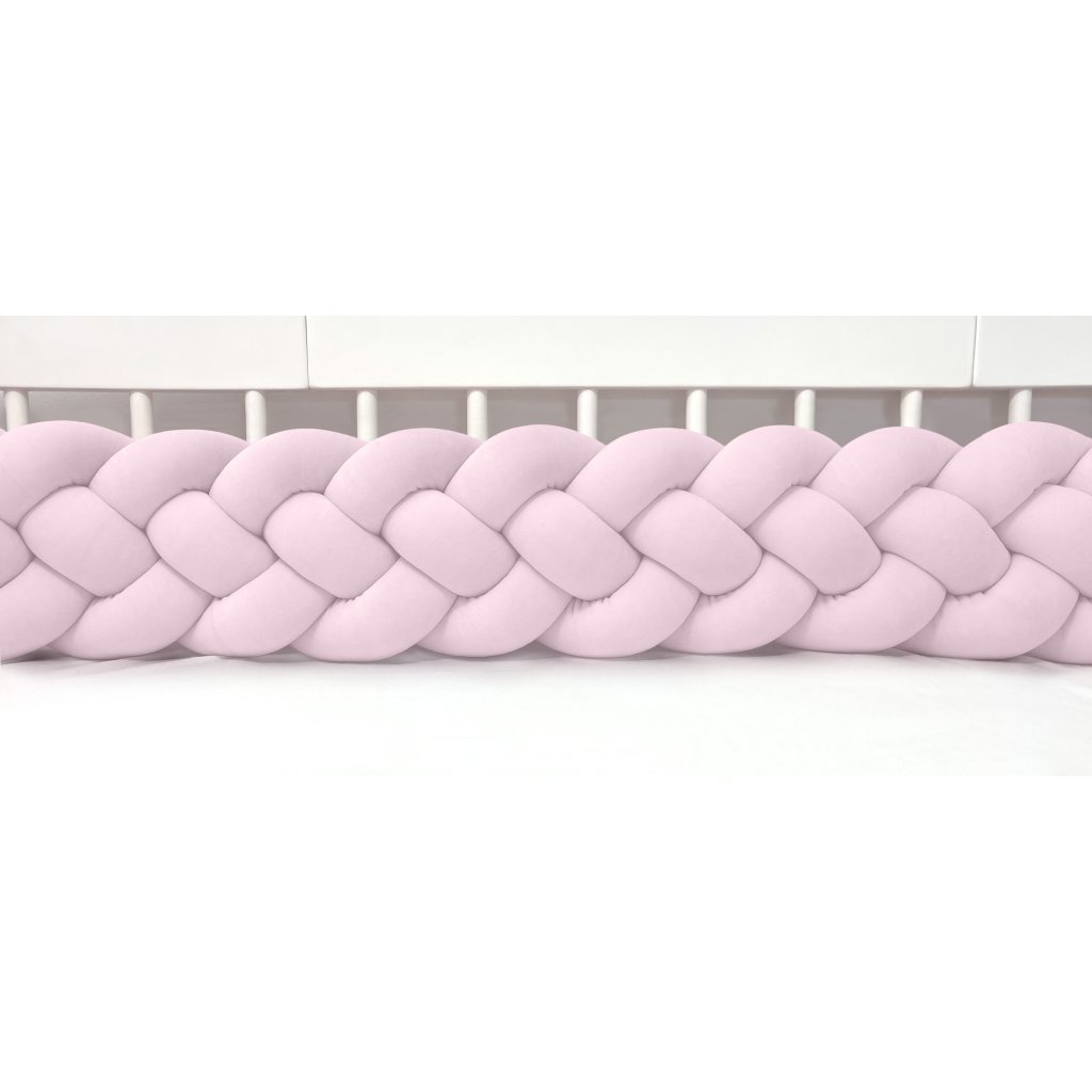 Plyšový mantinel do postieľky - štvoritý pletenec bledoružový