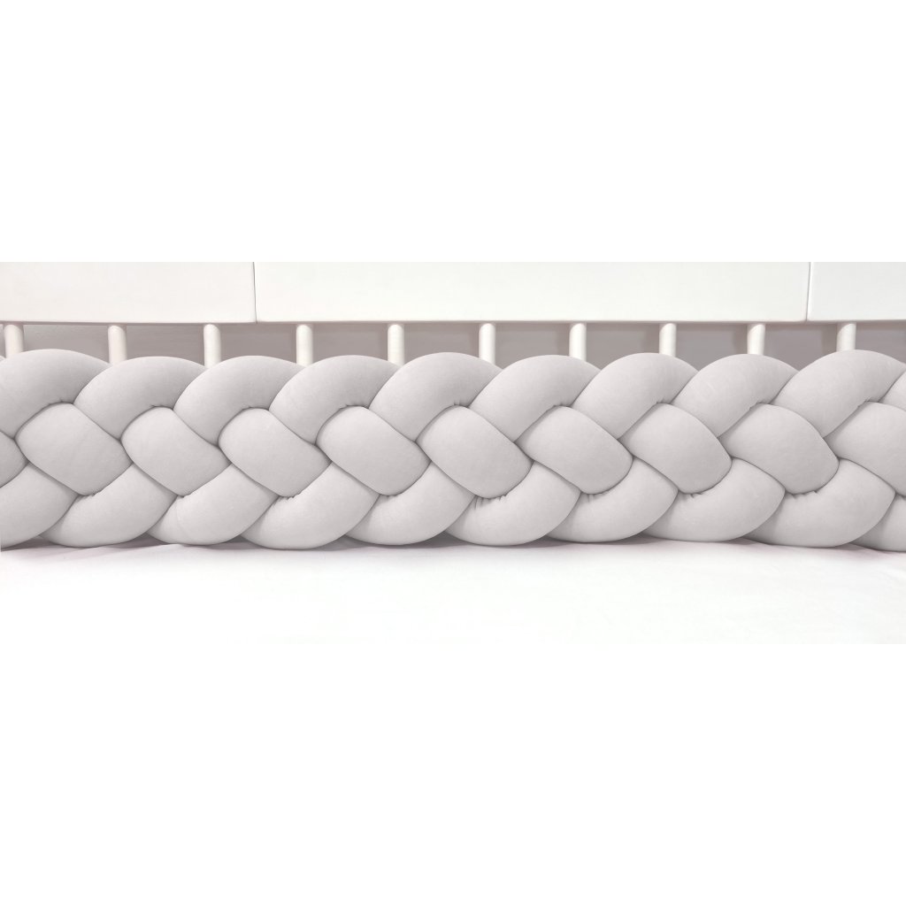 Plyšový mantinel do postieľky - štvoritý pletenec bledošedý