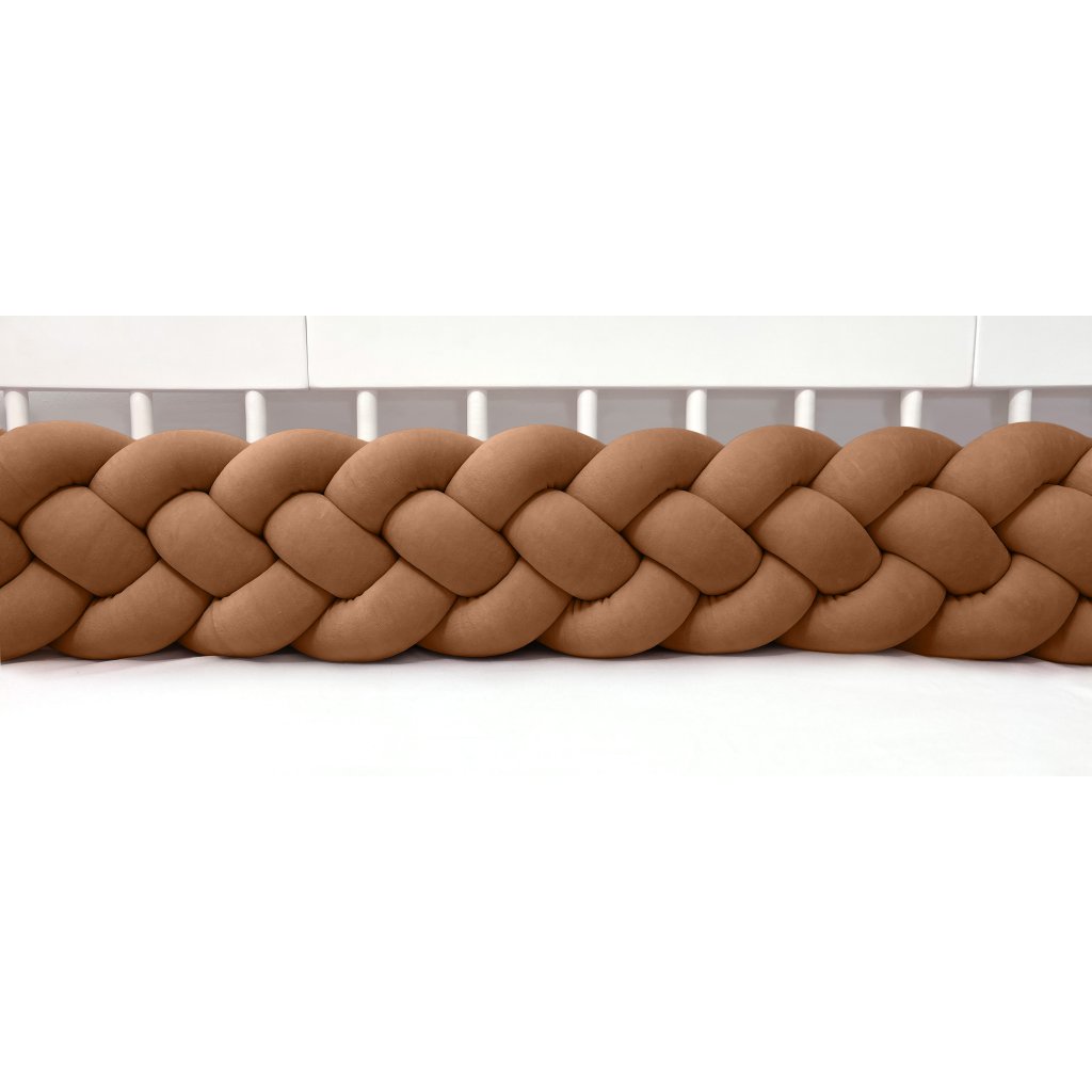 Plyšový ochranný zapletaný mantinel - pletenec štvoritý slúži ako ochranca vášho dieťatka v postieľke a zároveň ako štýlový doplnok v detskej izbe. Pletenec má sadu ozdobných stúh na pripevnenie. Výška cca 20 cm, hrúbka cca 9 cm. Mantinel je dostupný v rôznych dĺžkach (od 120 cm do 400 cm). Všetky 4 pramene sú vyrobené z kvalitného Prémium bavlneného velúru (certifikát Oeko Tex Standard 100) a ručne spletené do vrkoča. Záruka najvyššej kvality – 100% Handmade. Farba: čokoládová, číslo vo vzorkovníku: 24.