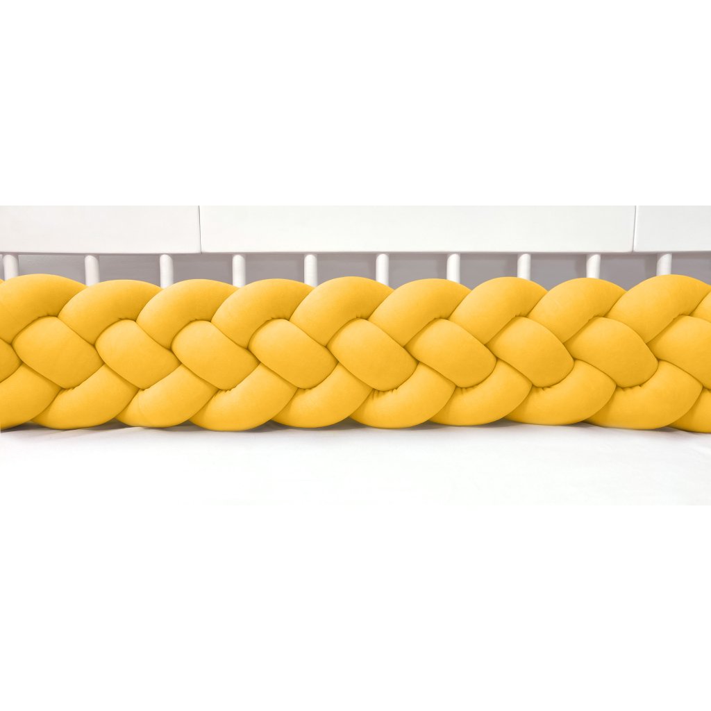 Plyšový ochranný zapletaný mantinel - pletenec štvoritý slúži ako ochranca vášho dieťatka v postieľke a zároveň ako štýlový doplnok v detskej izbe. Pletenec má sadu ozdobných stúh na pripevnenie. Výška cca 20 cm, hrúbka cca 9 cm. Mantinel je dostupný v rôznych dĺžkach (od 120 cm do 400 cm). Všetky 4 pramene sú vyrobené z kvalitného Prémium bavlneného velúru (certifikát Oeko Tex Standard 100) a ručne spletené do vrkoča. Záruka najvyššej kvality – 100% Handmade. Farba: medová, číslo vo vzorkovníku: 04.