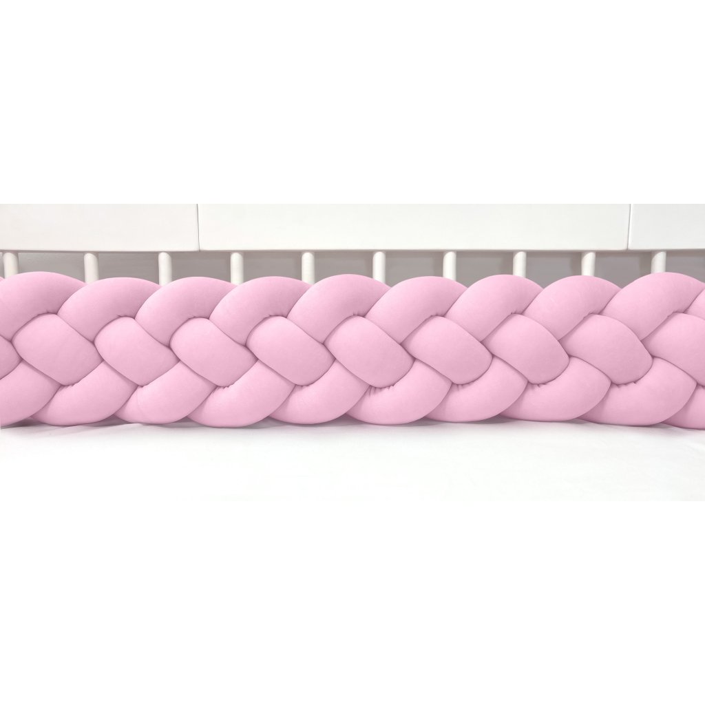 Plyšový mantinel do postieľky - štvoritý pletenec ružový